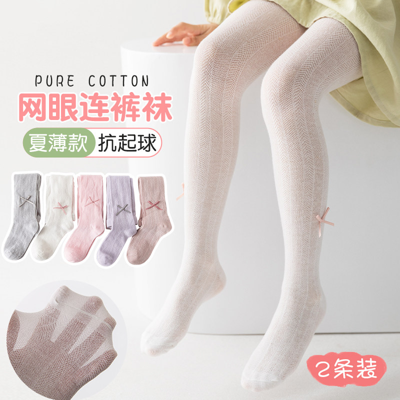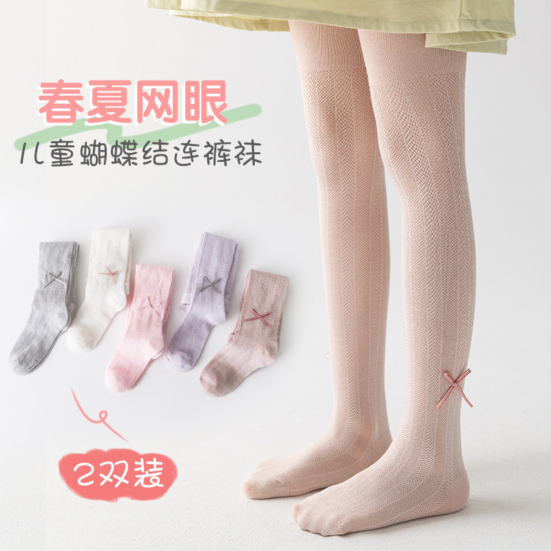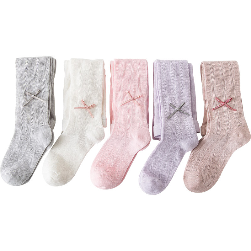 Детские летние тонкие колготки, белые леггинсы с бантиком