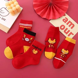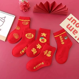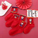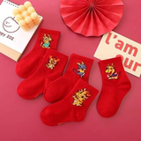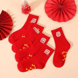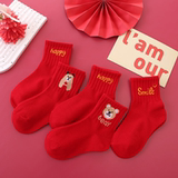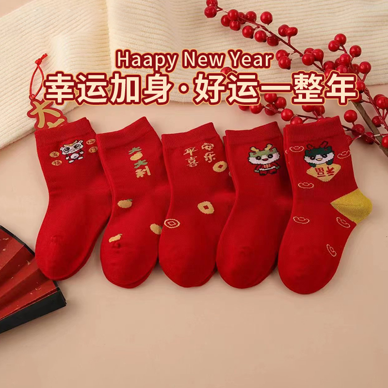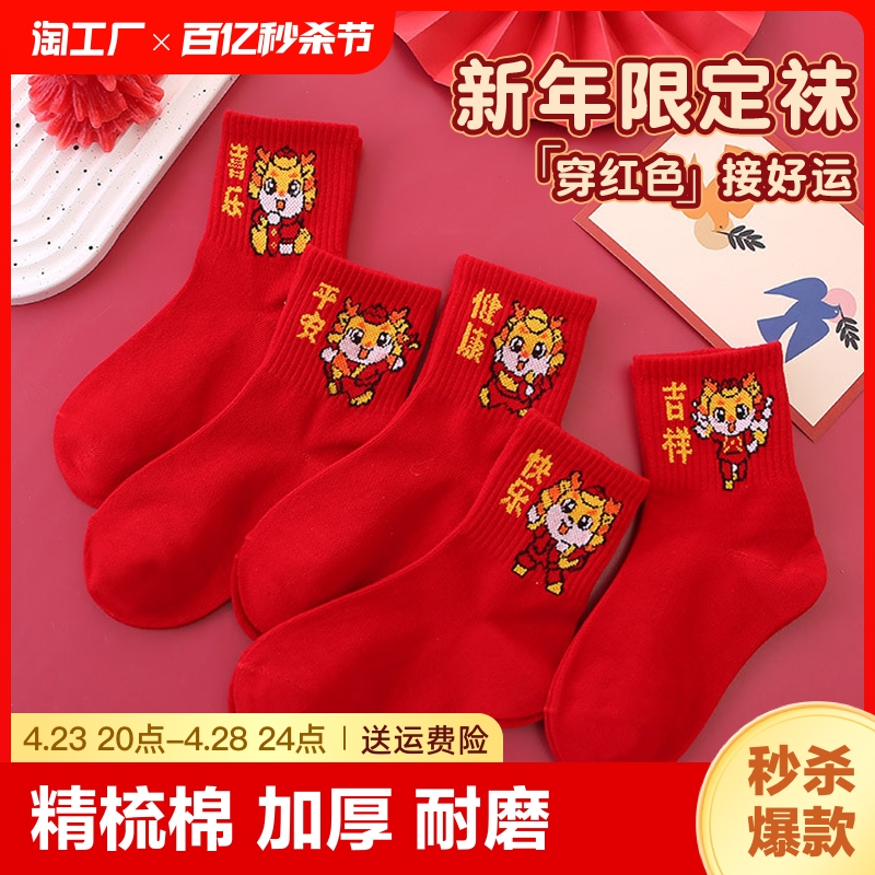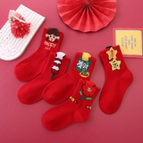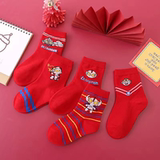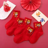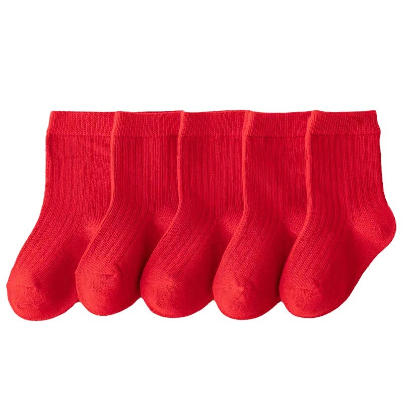 Детские красные носки для мальчиков, хлопковые демисезонные гольфы, оберег на день рождения, подходит для подростков, увеличенная толщина, средней длины