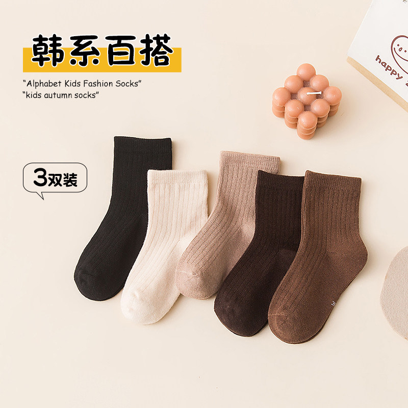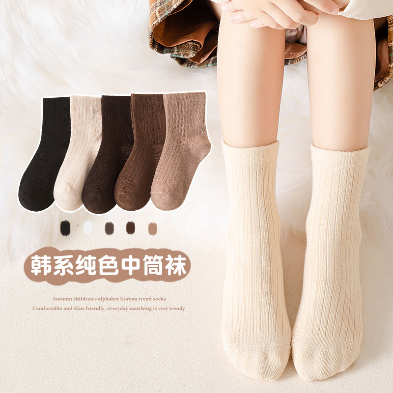 Осенние хлопковые носки, детские черные цветные демисезонные гольфы, средней длины, подходят для подростков