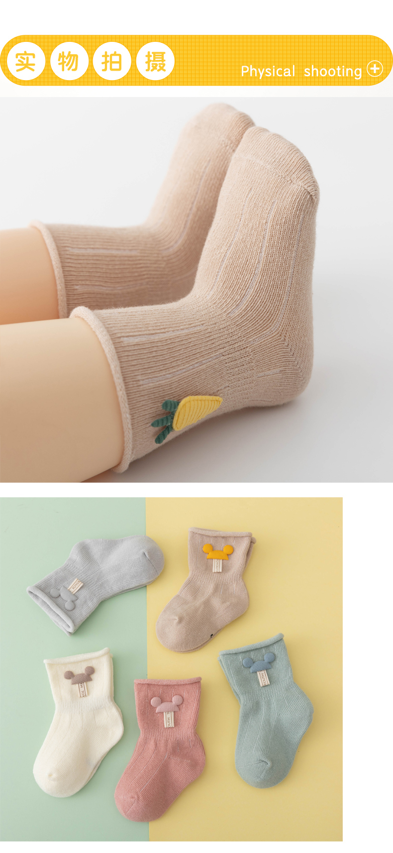 Детские осенние хлопковые носки для новорожденных, 3 мес.