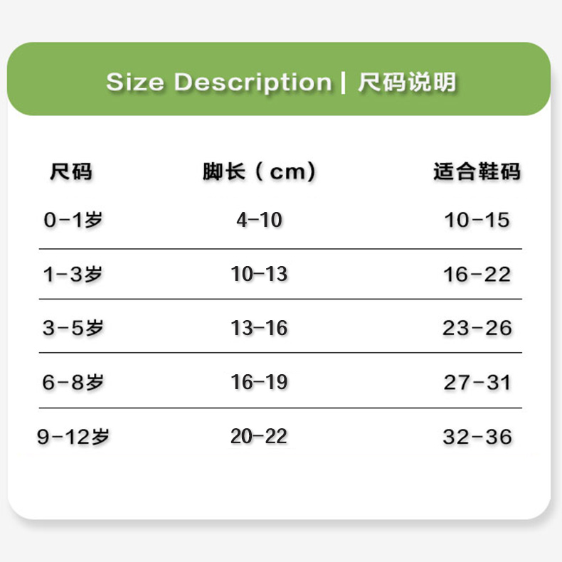 | Возрастная категория: | 0-1 лет, 4-10см, 1-3 лет, 10-13см, 3-5 лет, 13-16см, 6-8 лет, 16-19см, Код XL (9-12 лет) подходит для 32-36 ярдов |