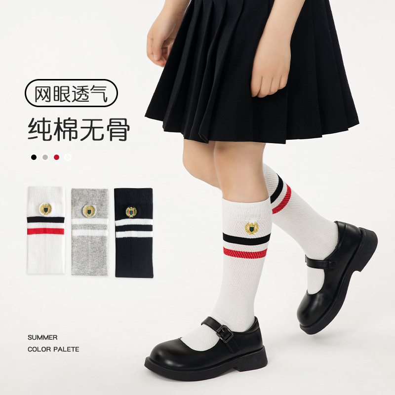 Детские летние тонкие хлопковые белые гольфы для мальчиков для школьников, средней длины