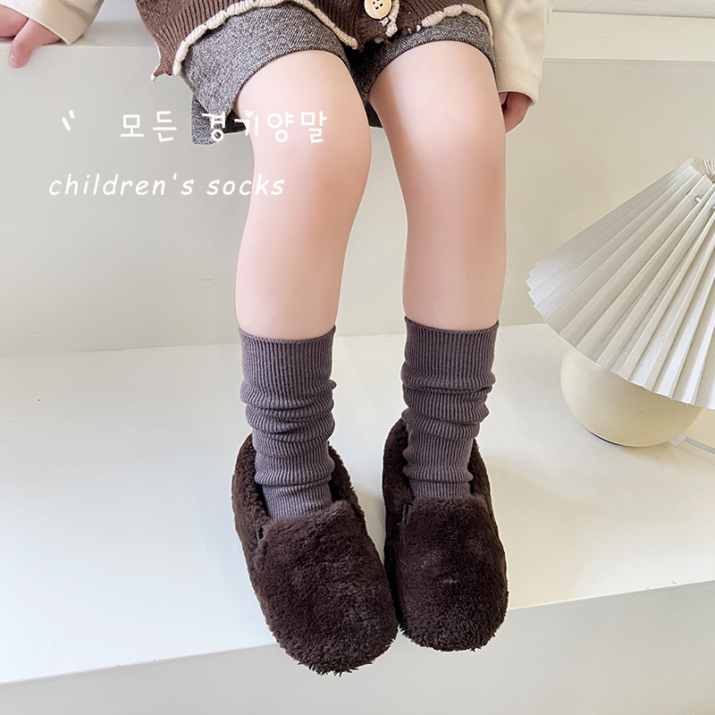 Детские демисезонные носки, кашемировые ретро однотонные гольфы, средней длины
