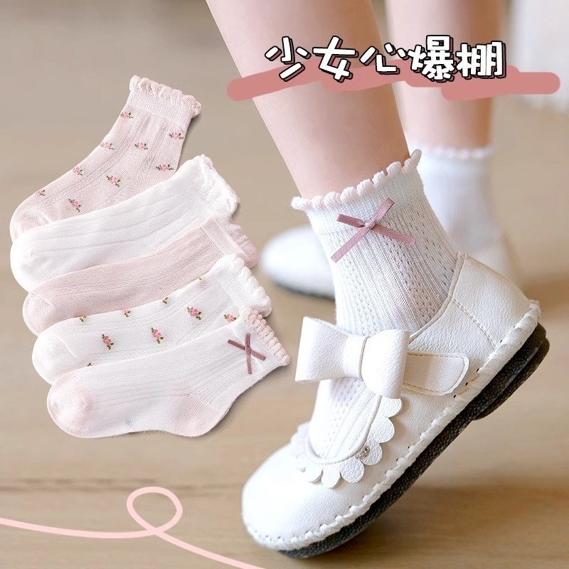 Летние тонкие носки, хлопковые детские гольфы для девочек, средней длины