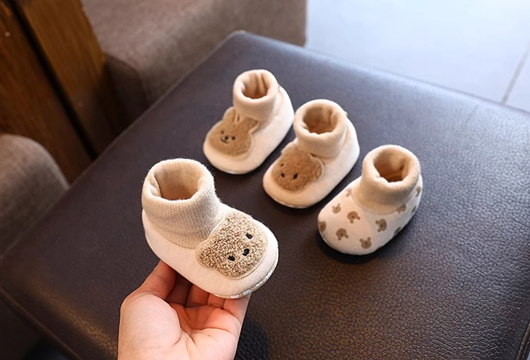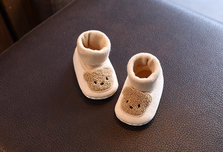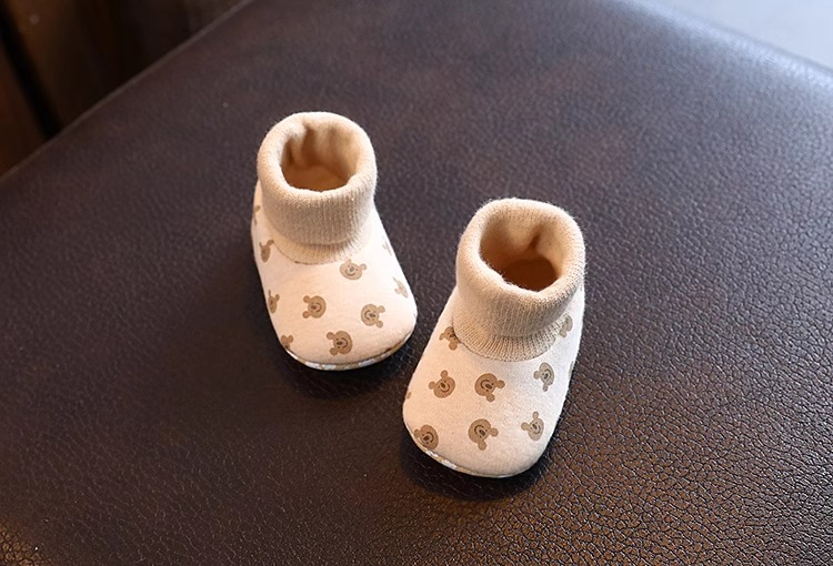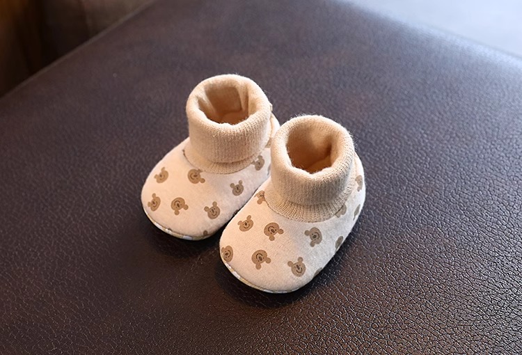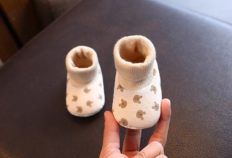 Детские осенние демисезонные носки для новорожденных, хлопковые удерживающие тепло флисовые туфли подходит для мужчин и женщин для девочек, мягкая подошва, 0-6 мес.