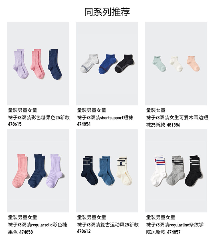 Детская одежда Uniqlo, высокие носки для мальчиков и девочек/3 пары носков в студенческом стиле, 25 весенне-летних, новый стиль 479103