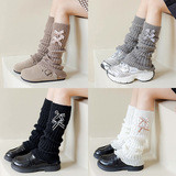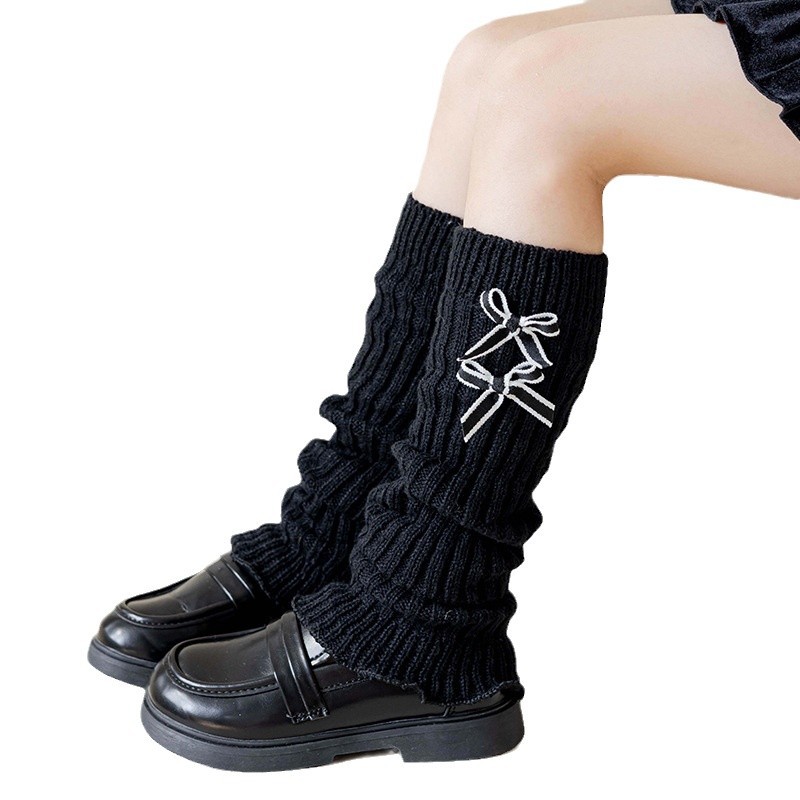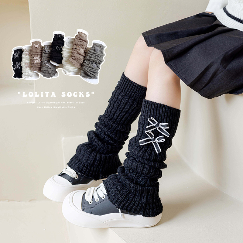 Японские белые осенние трикотажные гетры с бантиком, демисезонные сапоги