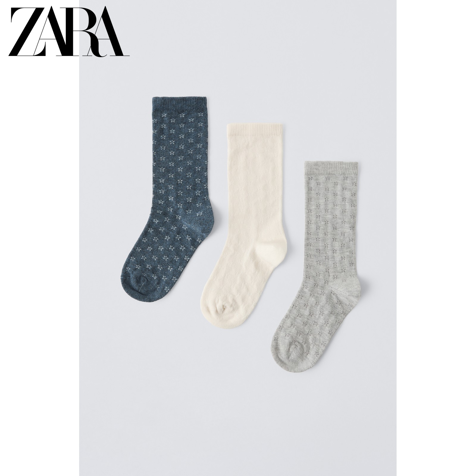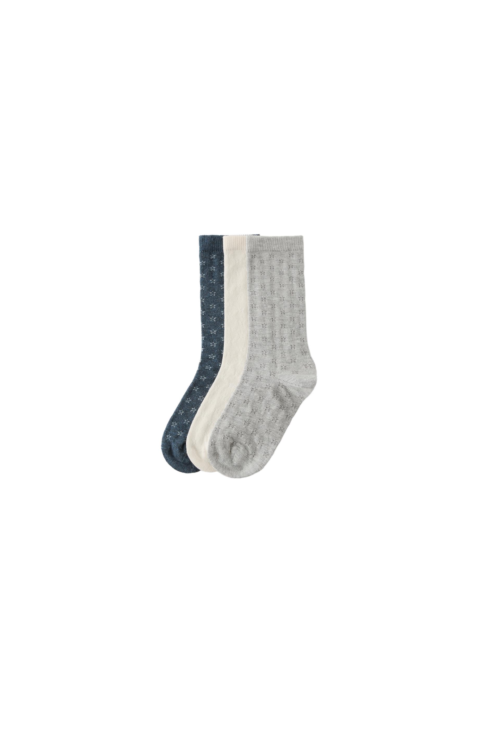 ZARA 2025 Летние новые продукты, детская одежда, набор тройной пары, отделка Hollow Star, удобные носки 4934644