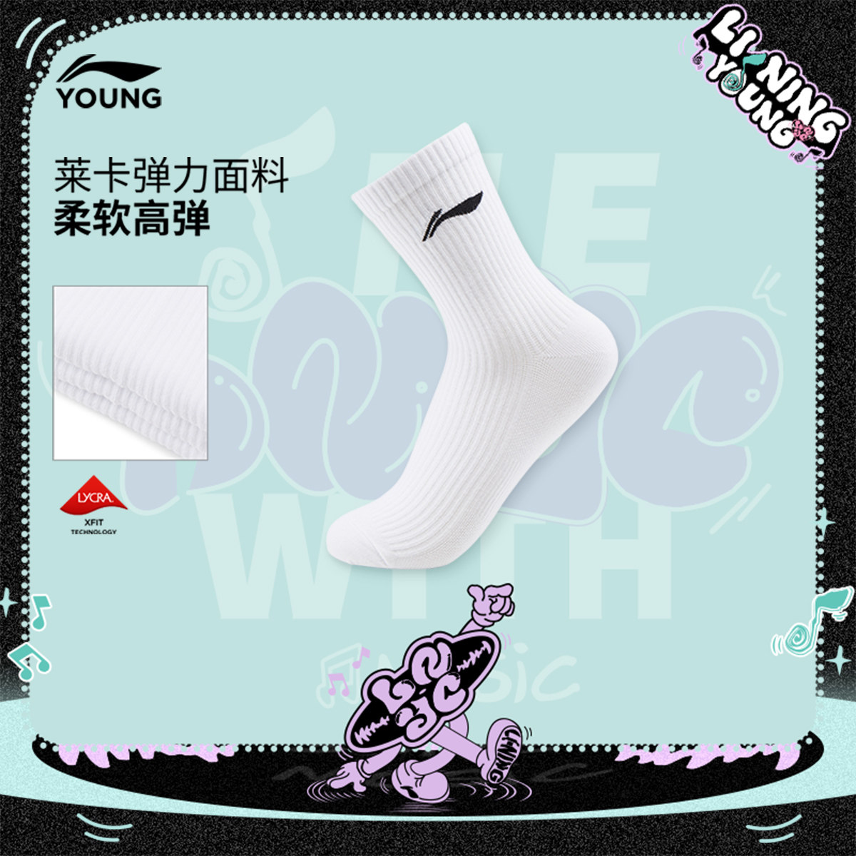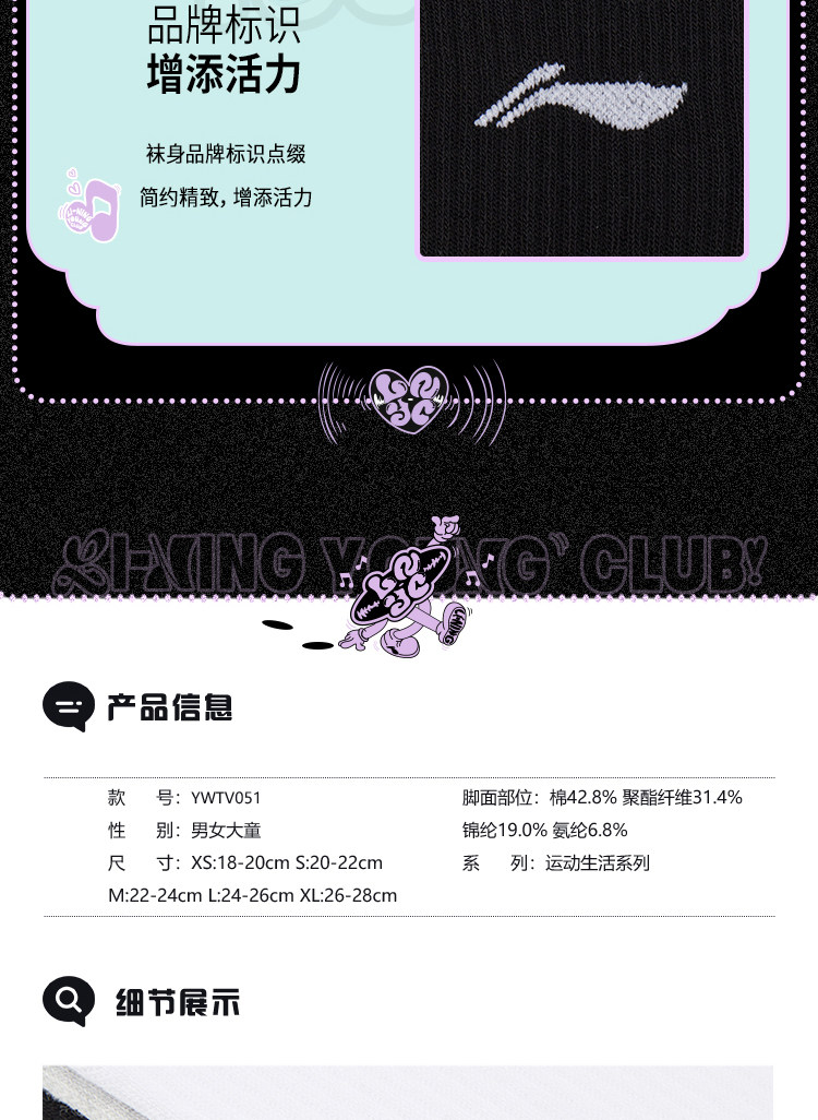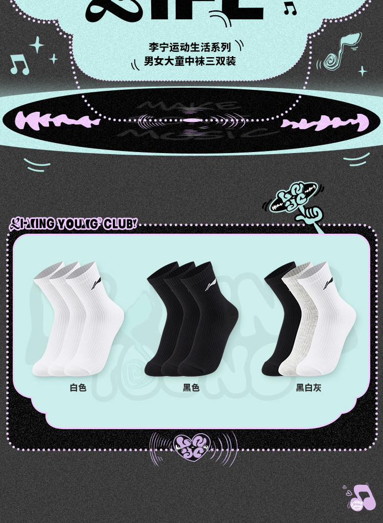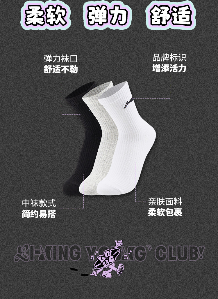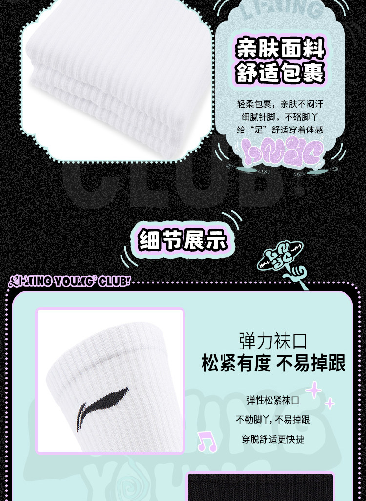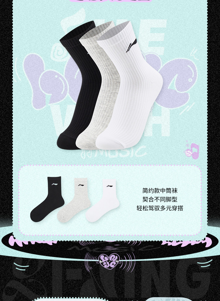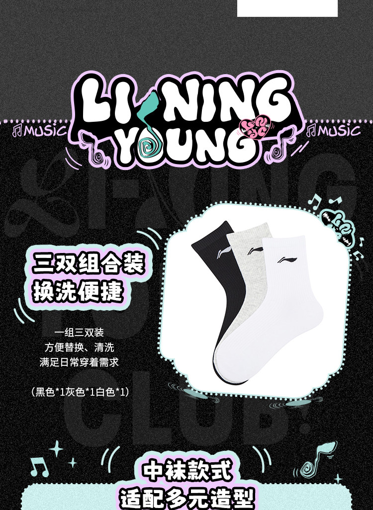 Li Ning, спортивные носки подходит для мужчин и женщин, средней длины, подходят для подростков