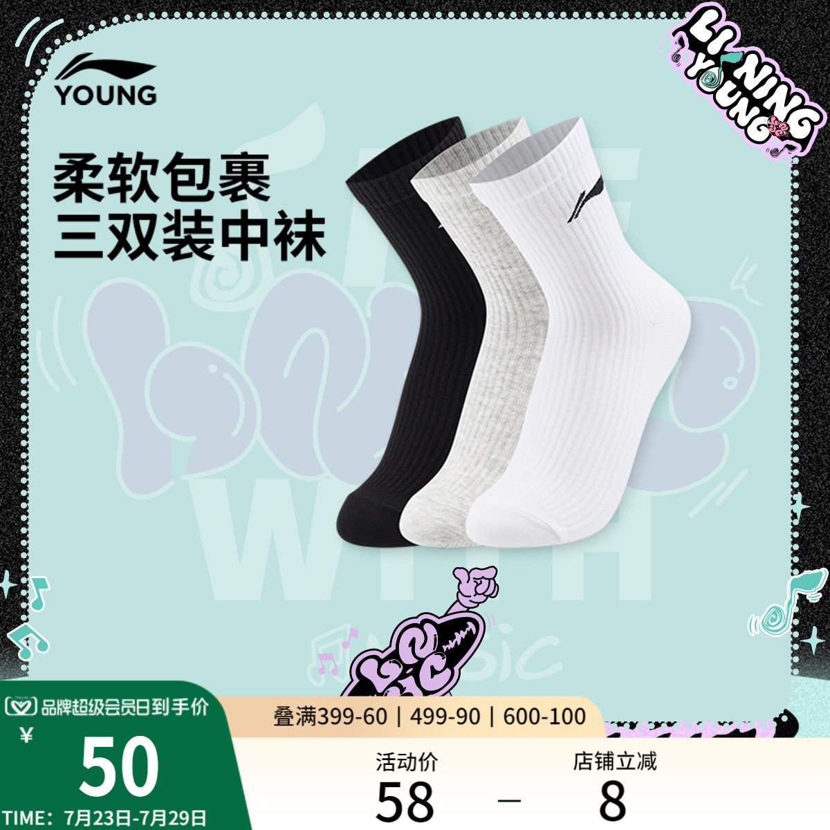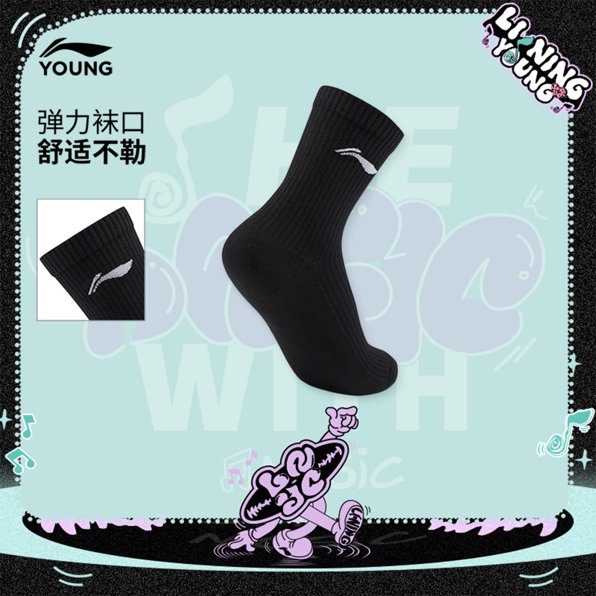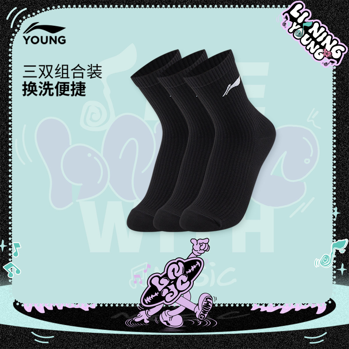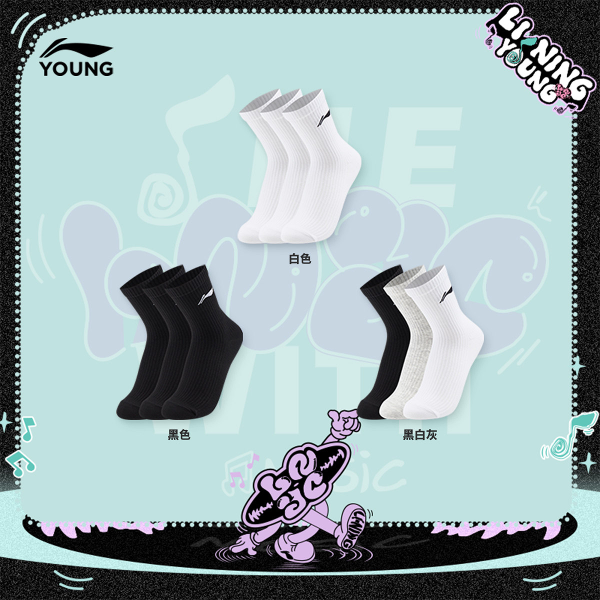 Li Ning, спортивные носки подходит для мужчин и женщин, средней длины, подходят для подростков