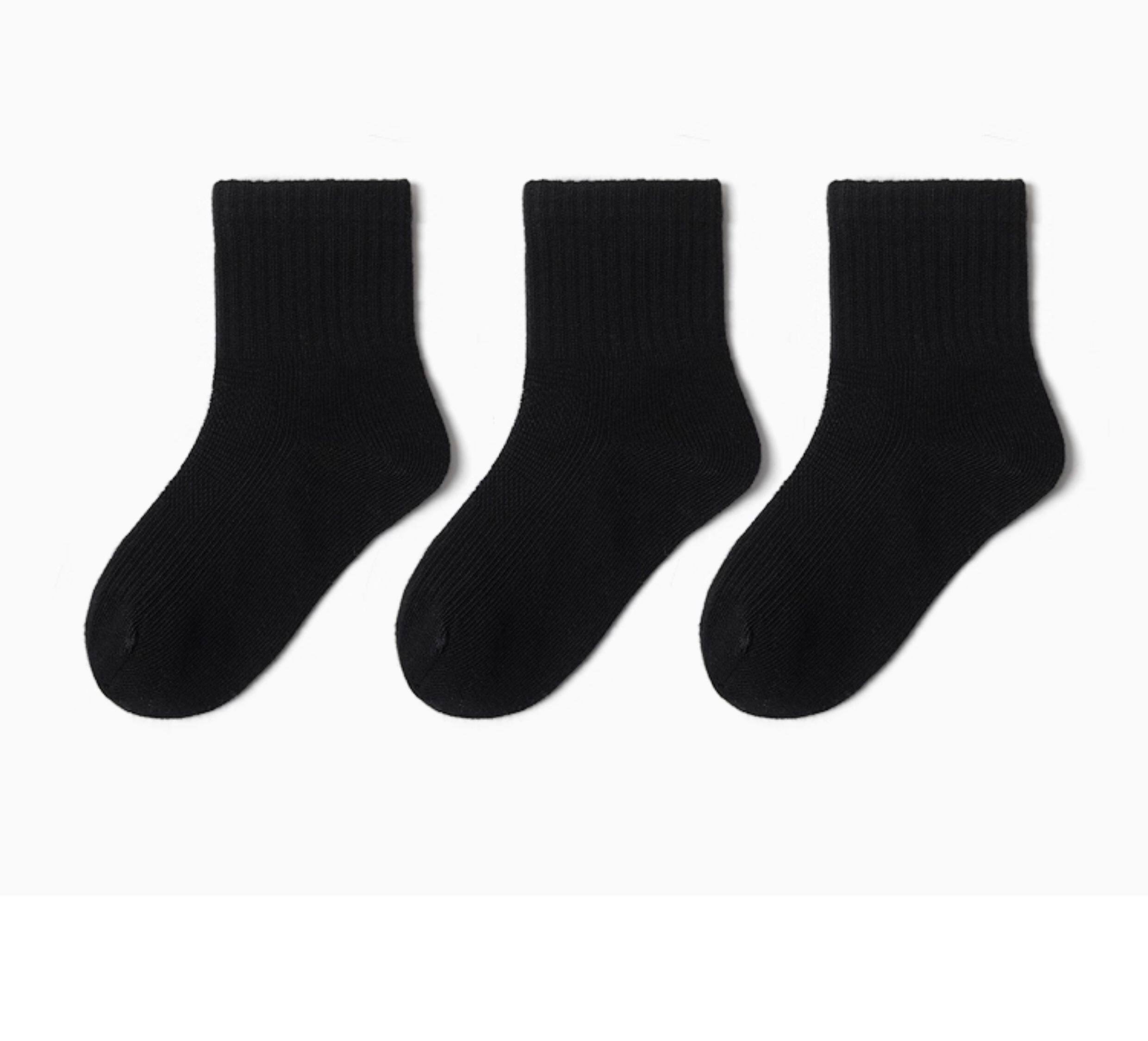 Детские хлопковые черные носки для мальчиков, осенние гольфы для школьников, подходит для подростков, средней длины