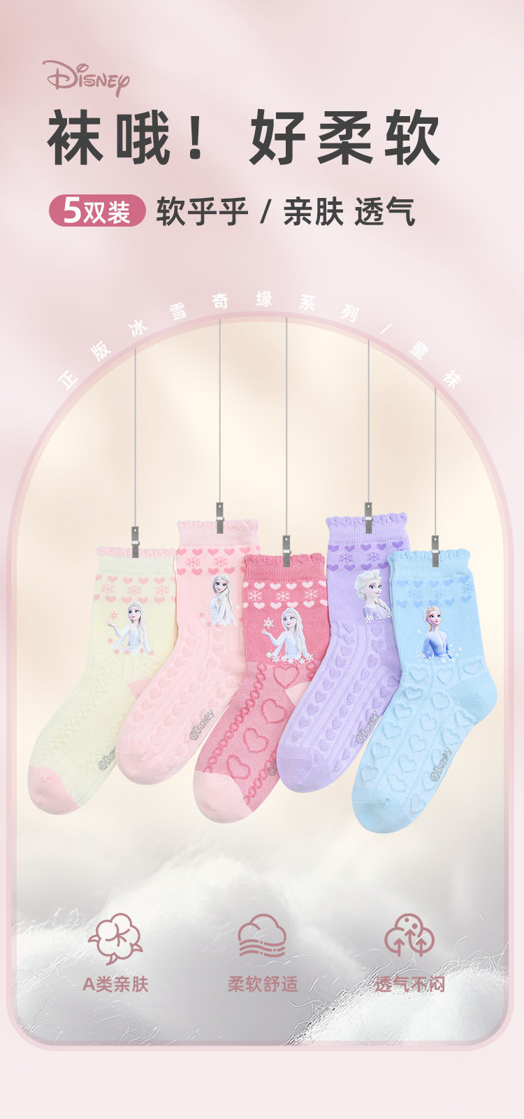 Носки принцессы Эльзы, детские весенне-осенние детские носки среднего и большого размера, новинка 2025 года, хлопковые носки среднего размера без костей для девочек, детские
