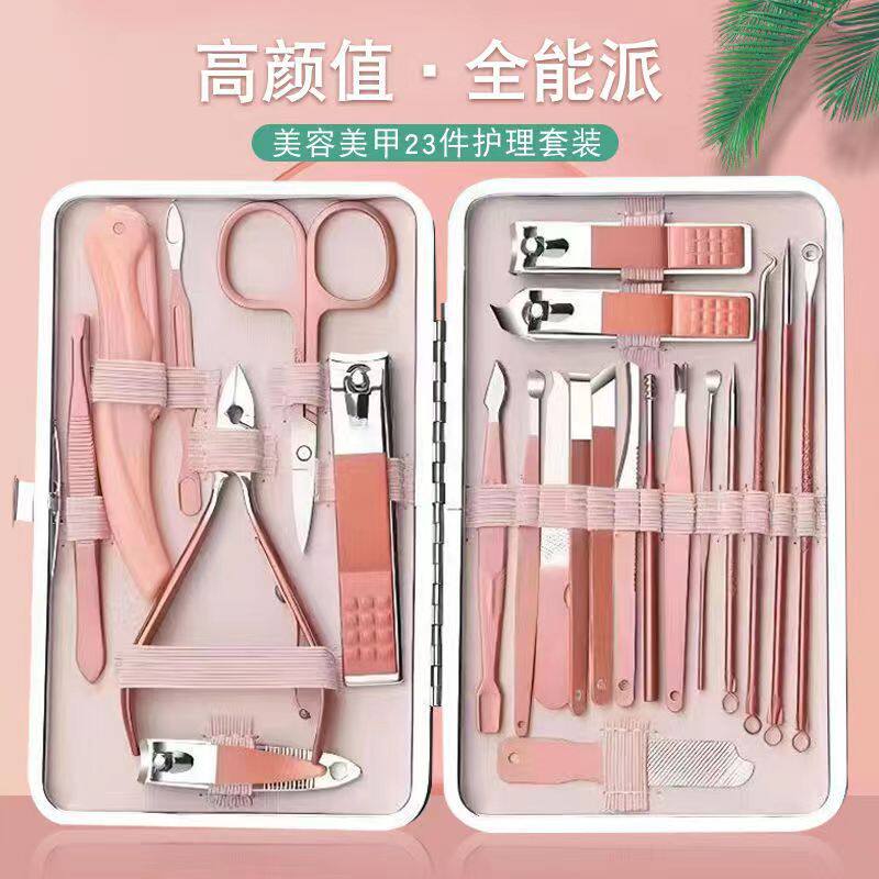 Золотые маникюрные кусачки с розой в составе для ногтей, комплект, косметический набор маникюрных инструментов, 23 шт, полный комплект