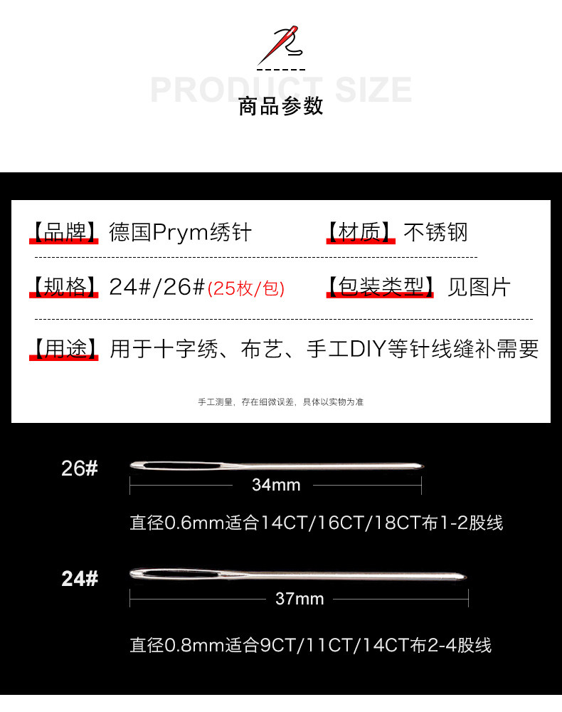 Бесплатная доставка поперечной вышивкой иглы темная головка Germany Prym Вышитая игла 22 24 26 Zhongge 3 Stock 3 Stock 4 Stock