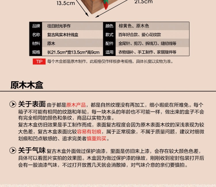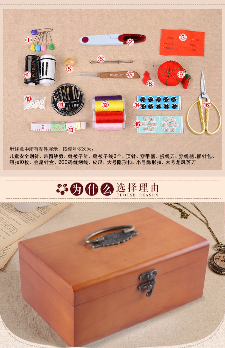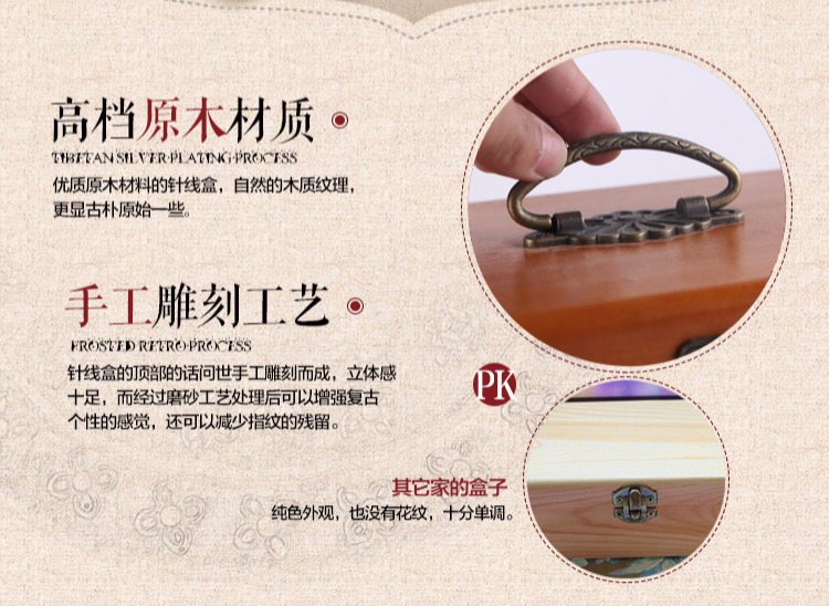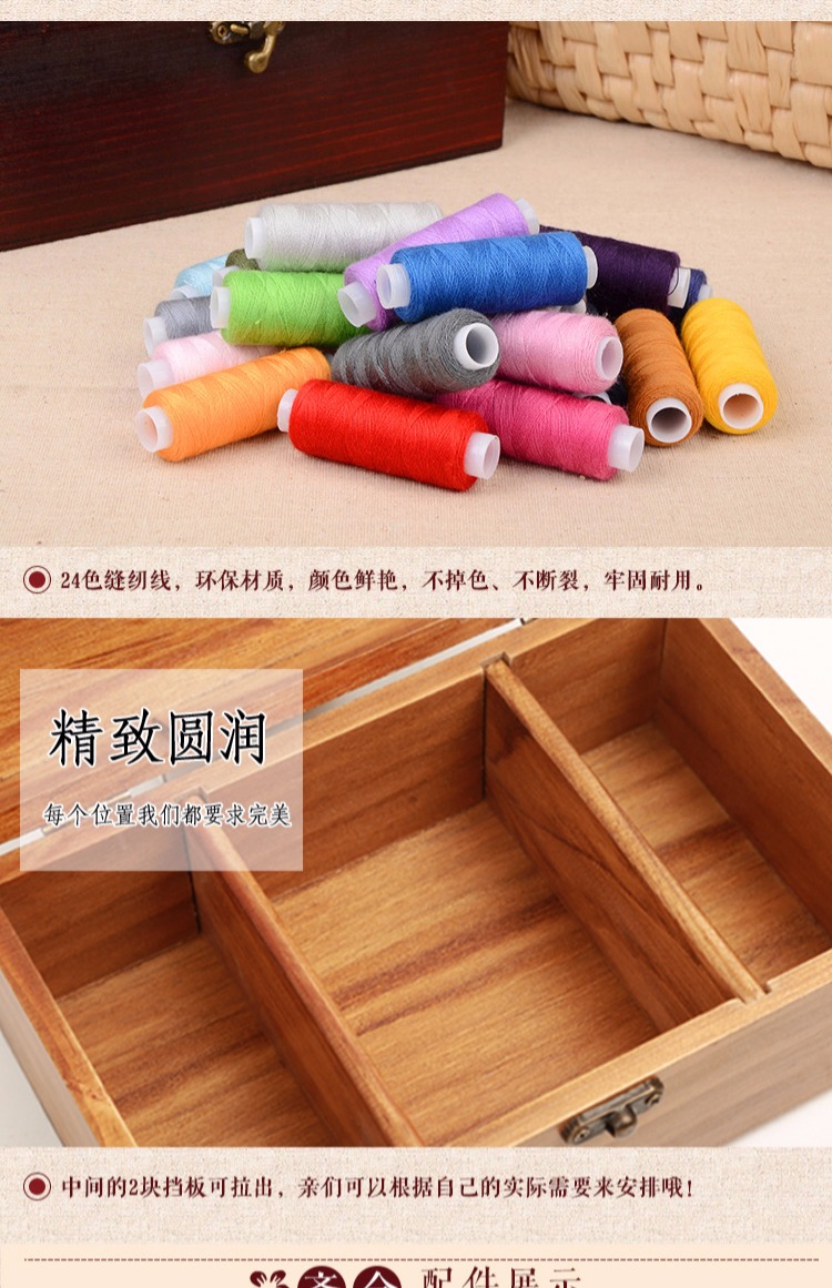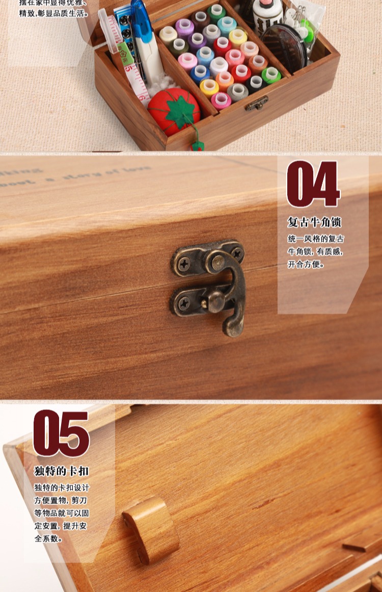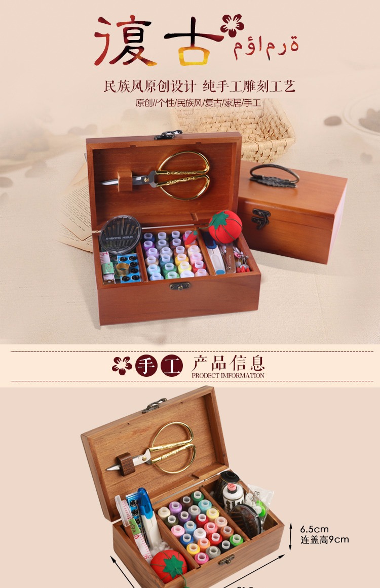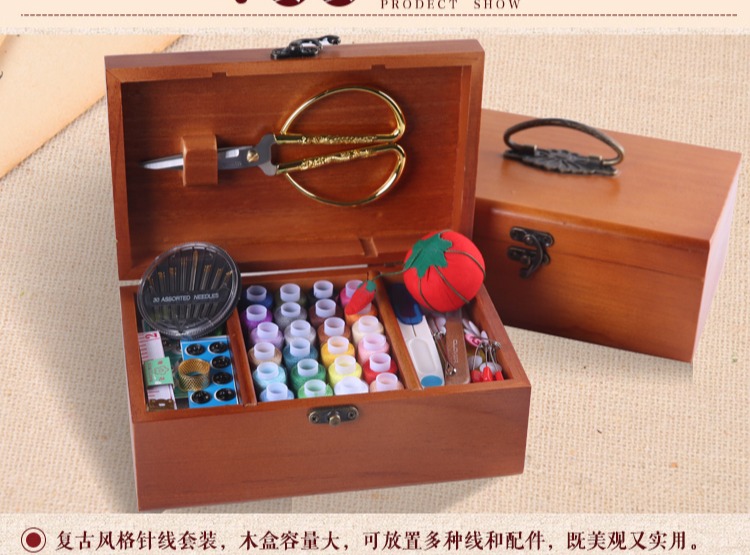 Ретро домашняя линия с твердым деревом линии швейной швейной коробки для хранения ручной шва для шва