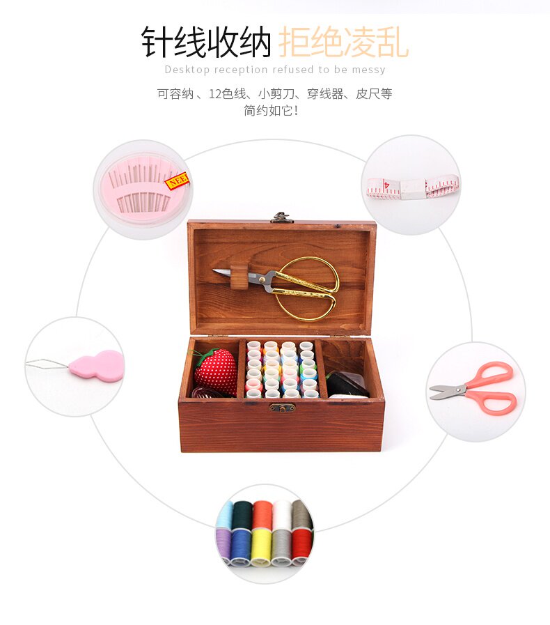 Бытовая швейная шкатулка из цельного дерева, сумка для шитья, гаджет, портативный многофункциональный высококачественный набор швейных игл для студенческого общежития