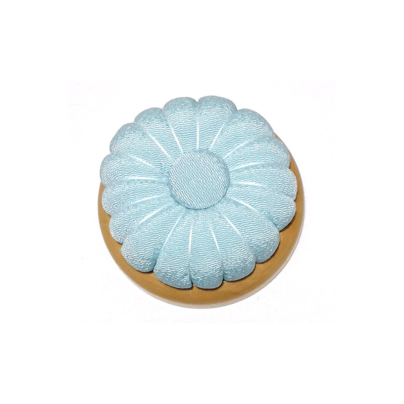 Диаметр составляет около 7 см, высотой около 3 см.