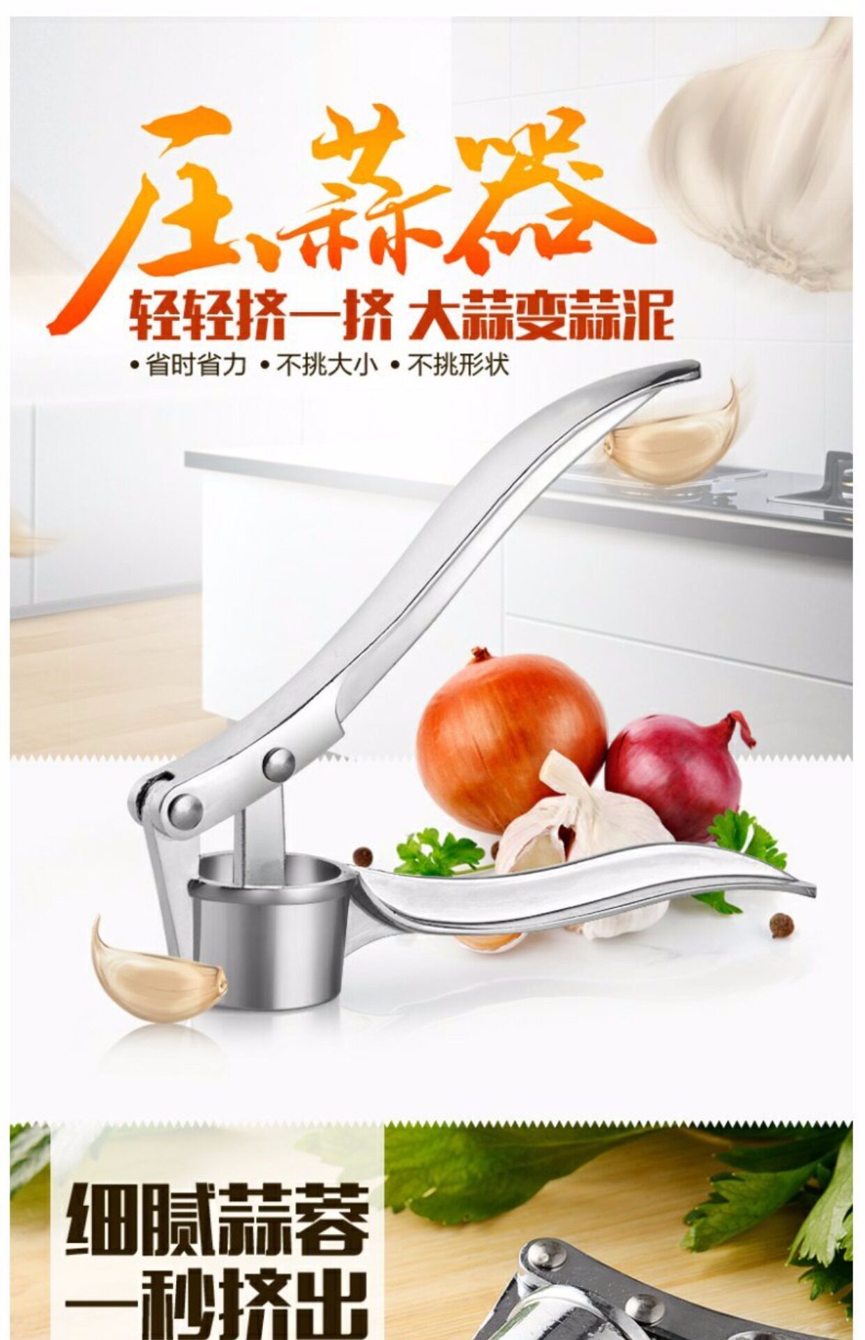Толстый сжатие чеснока, очищающего чеснок, чеснок, чеснок, молодежная грязь чеснока, чеснока из нержавеющей стали.