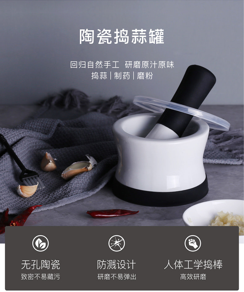 膳道 Чесновая дробилка чеснока керамика фунт -чесночный банка ручной кухонной машины