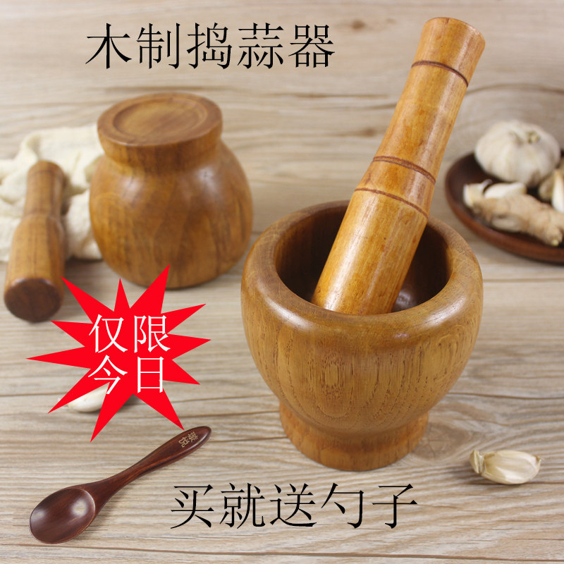 Сплошная деревянная банка из чеснока, семья Нанму, стуча из чесночного каменного раствора, старомодные фунты Пинджи, чесночная грязь, детская чеснок банка