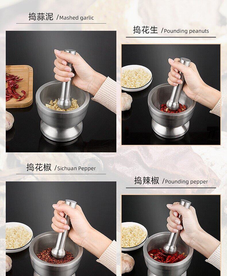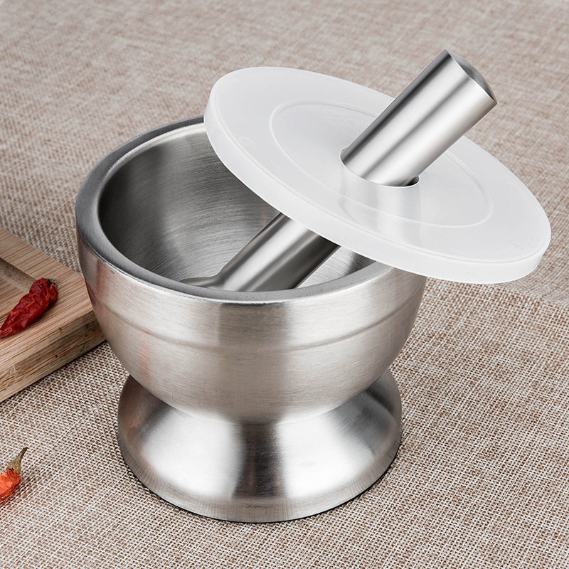 Домашнее пюре с сушеным перцем перец кунжут перца, шлифовальная миска, ручная чесночная раствор старая миска из нержавеющей стали с из нержавеющей стали.