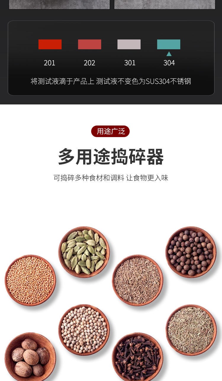 | Цвет: | 304 Trum -Thick маленькая дробилка, 304 очень большая дробилка+ложка+анти -бодрящая крышка, 304 дополнительного дополнительного большого раздавного устройства |