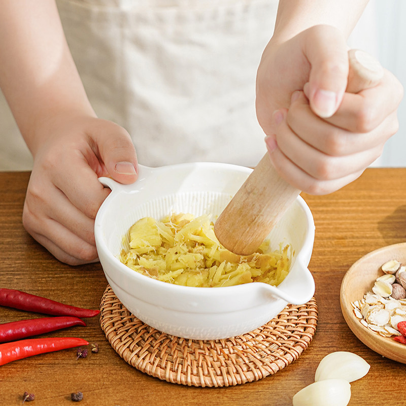Японское стиль чистый белый фарфоровый шлифование имбиря имбиря имбиря рука