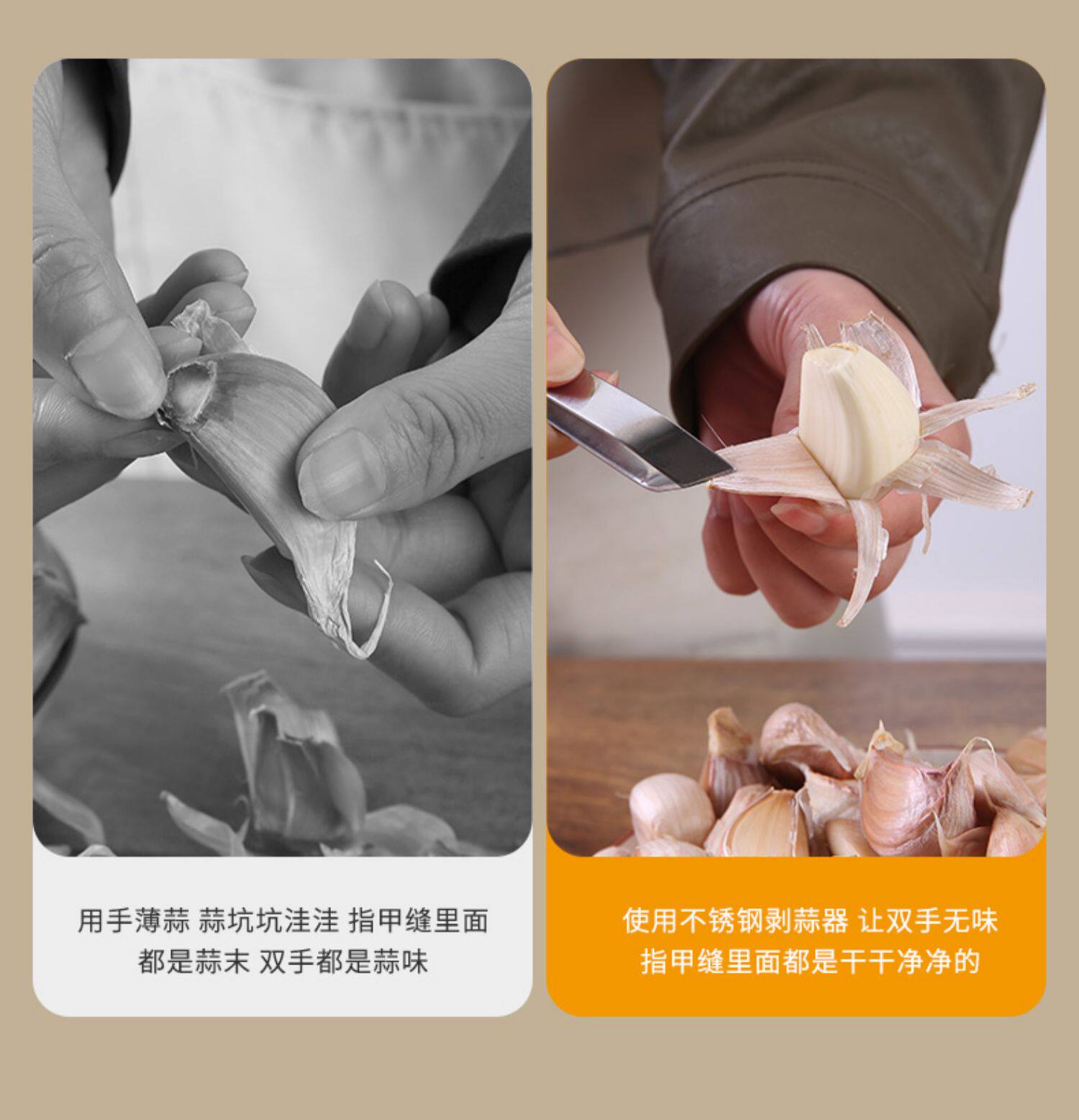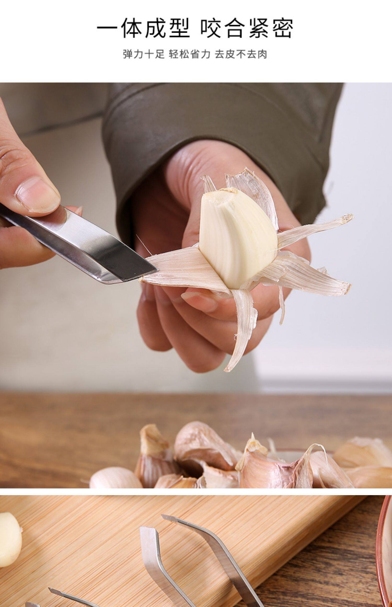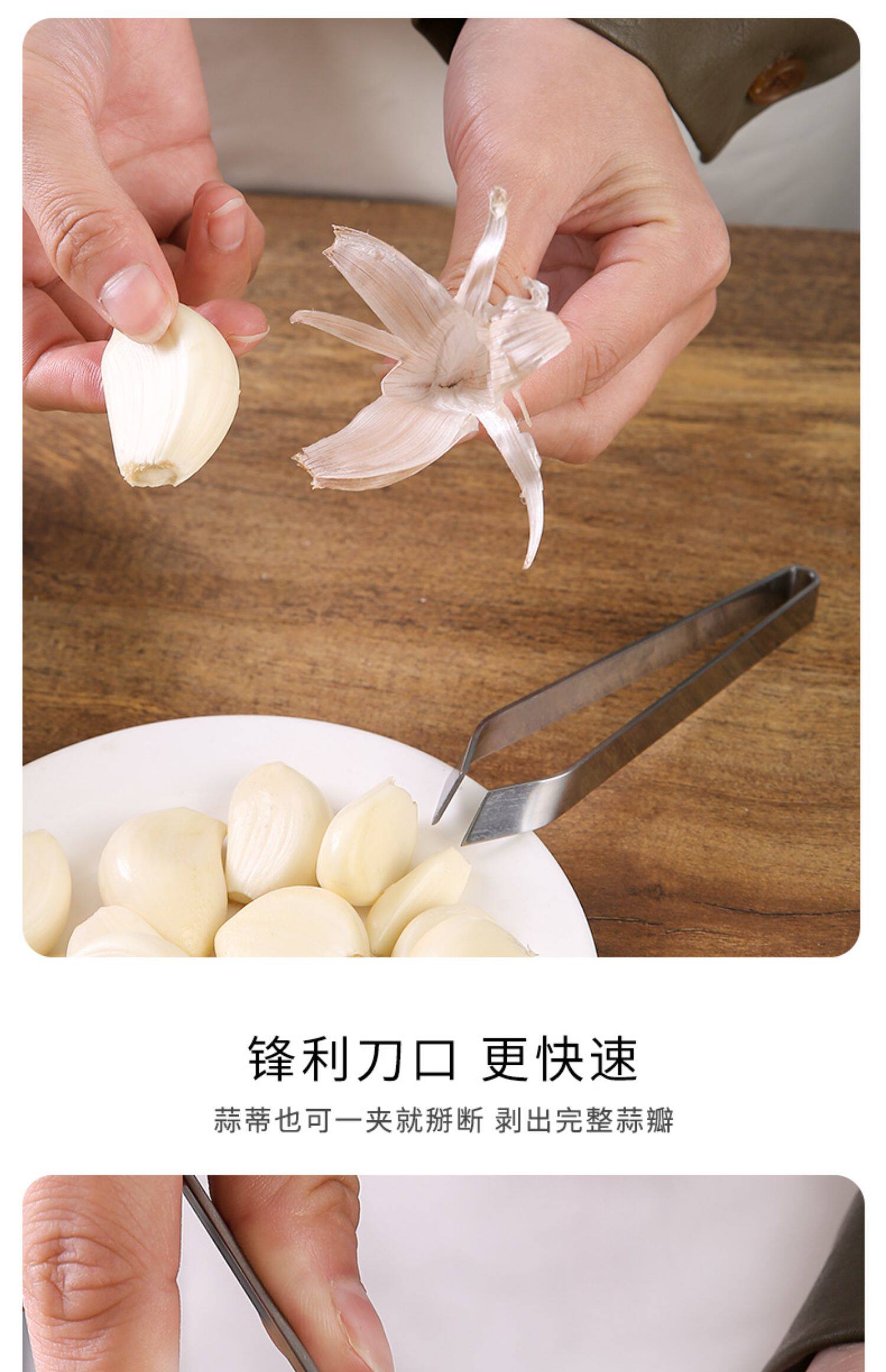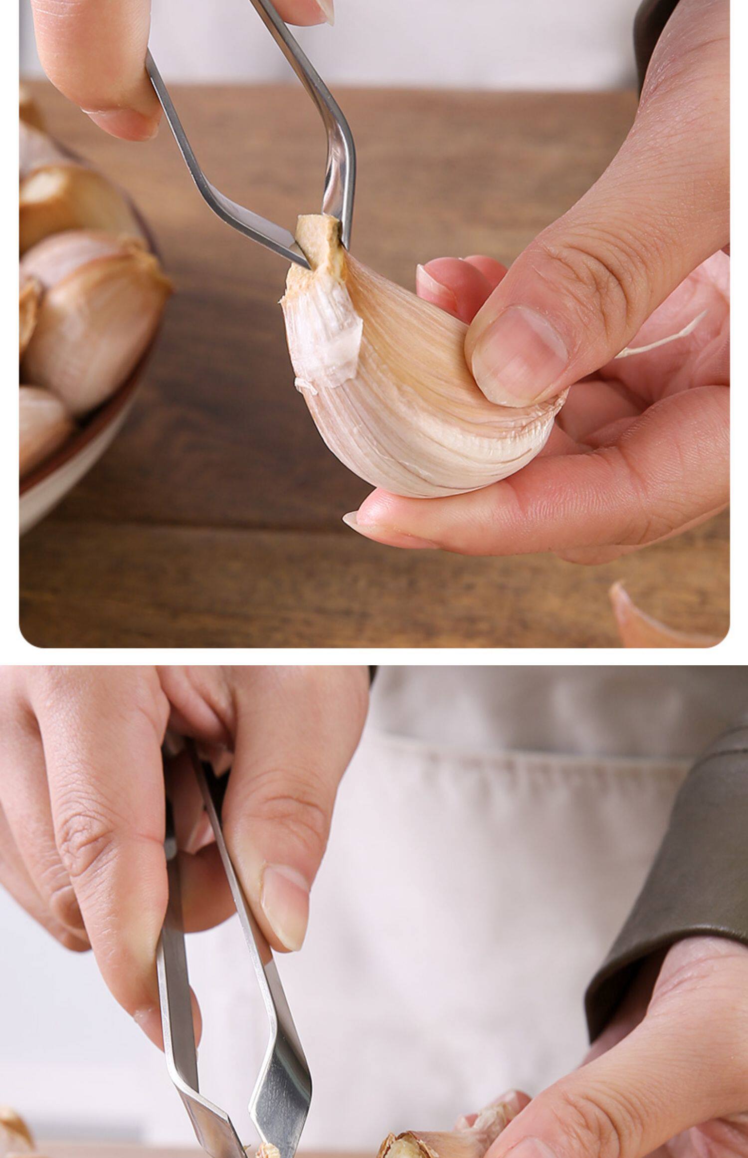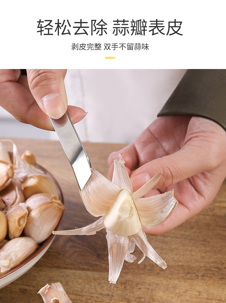 Разрежьте чесночный артефакт из нержавеющей стали, чтобы удалить зажим для кожи чеснока.
