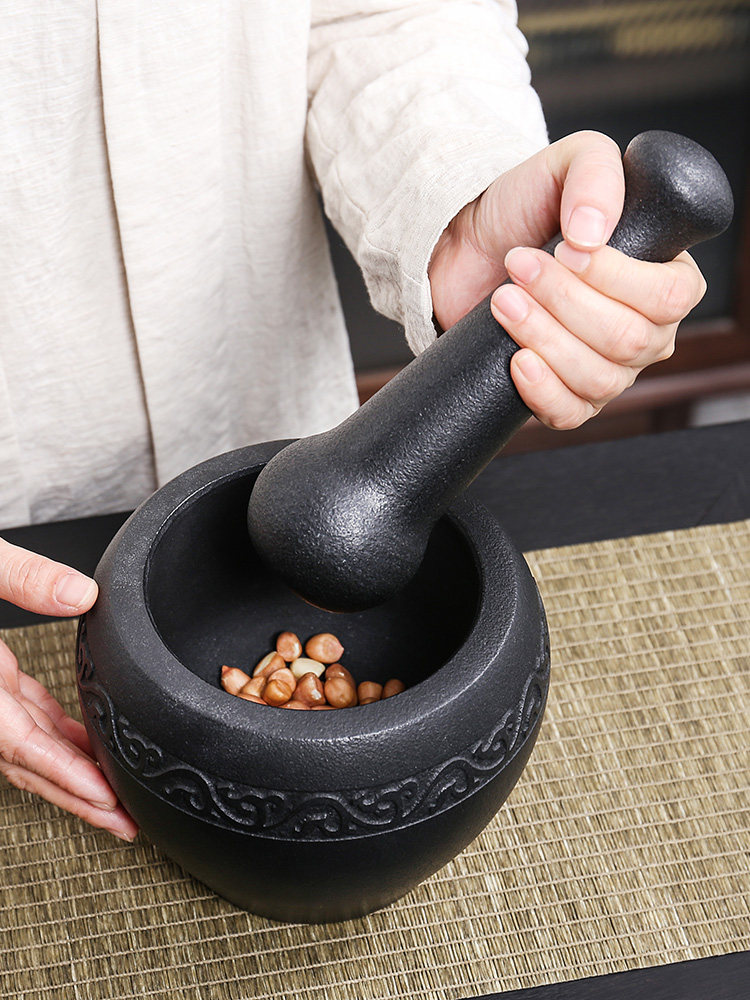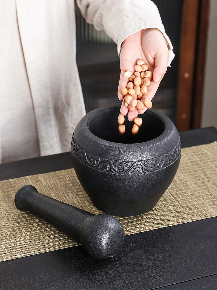 Каменная ступка из черного золота, старомодная чесночная ступка ручной работы, каменная чашка, чесночная толкушка, банка с лекарством, чаша для толкания гнезда, толкушка