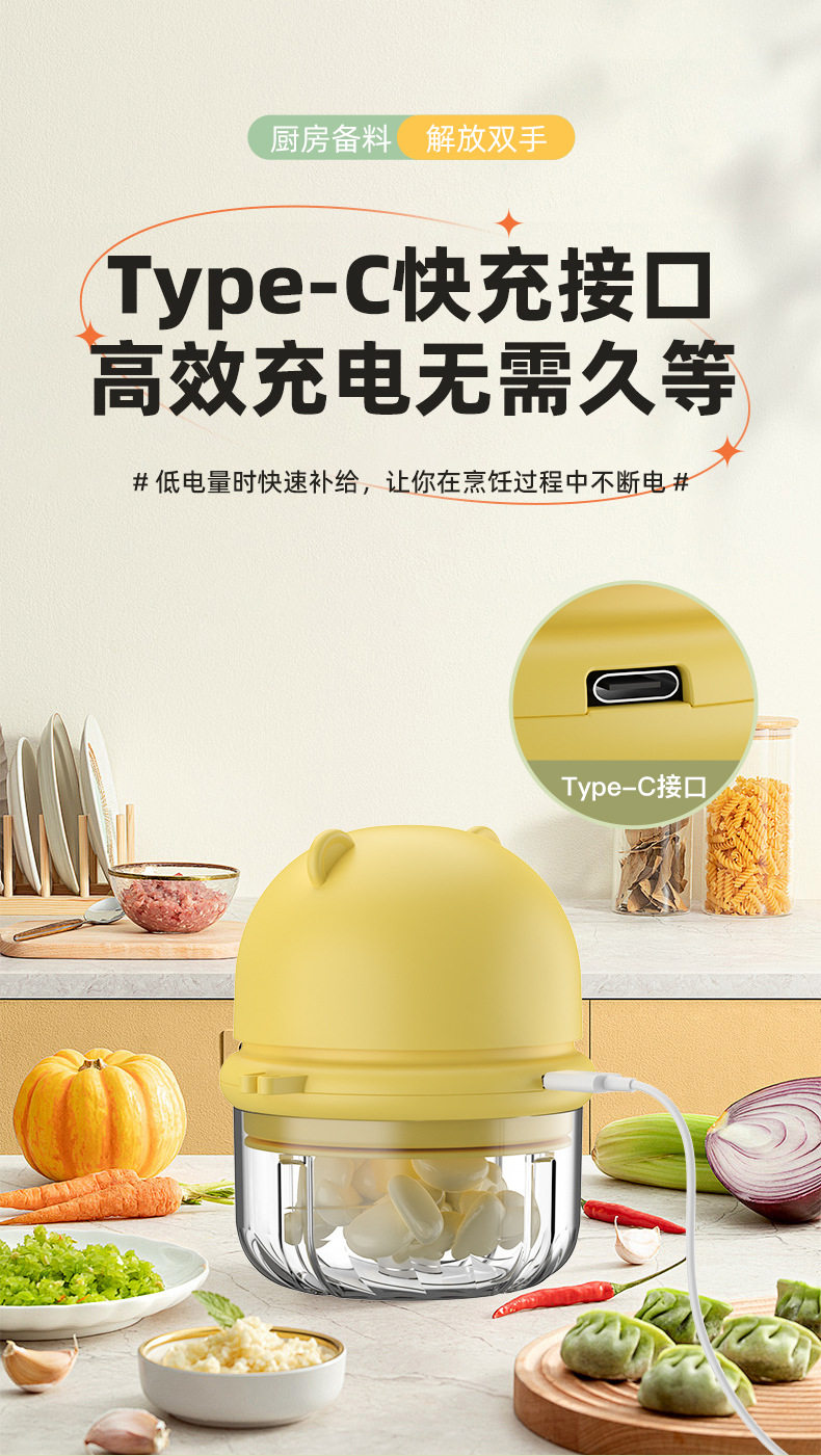 Электрическая чеснокодавилка для чеснока, бытовая маленькая чеснокодавилка, чеснокодавилка, беспроводная беспроводная портативная мясорубка