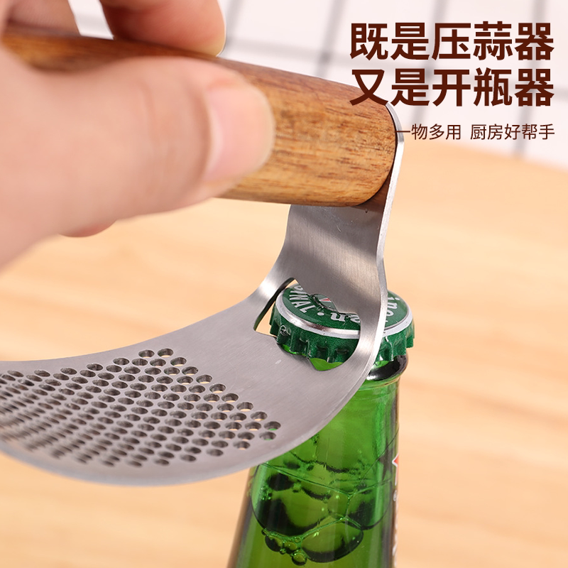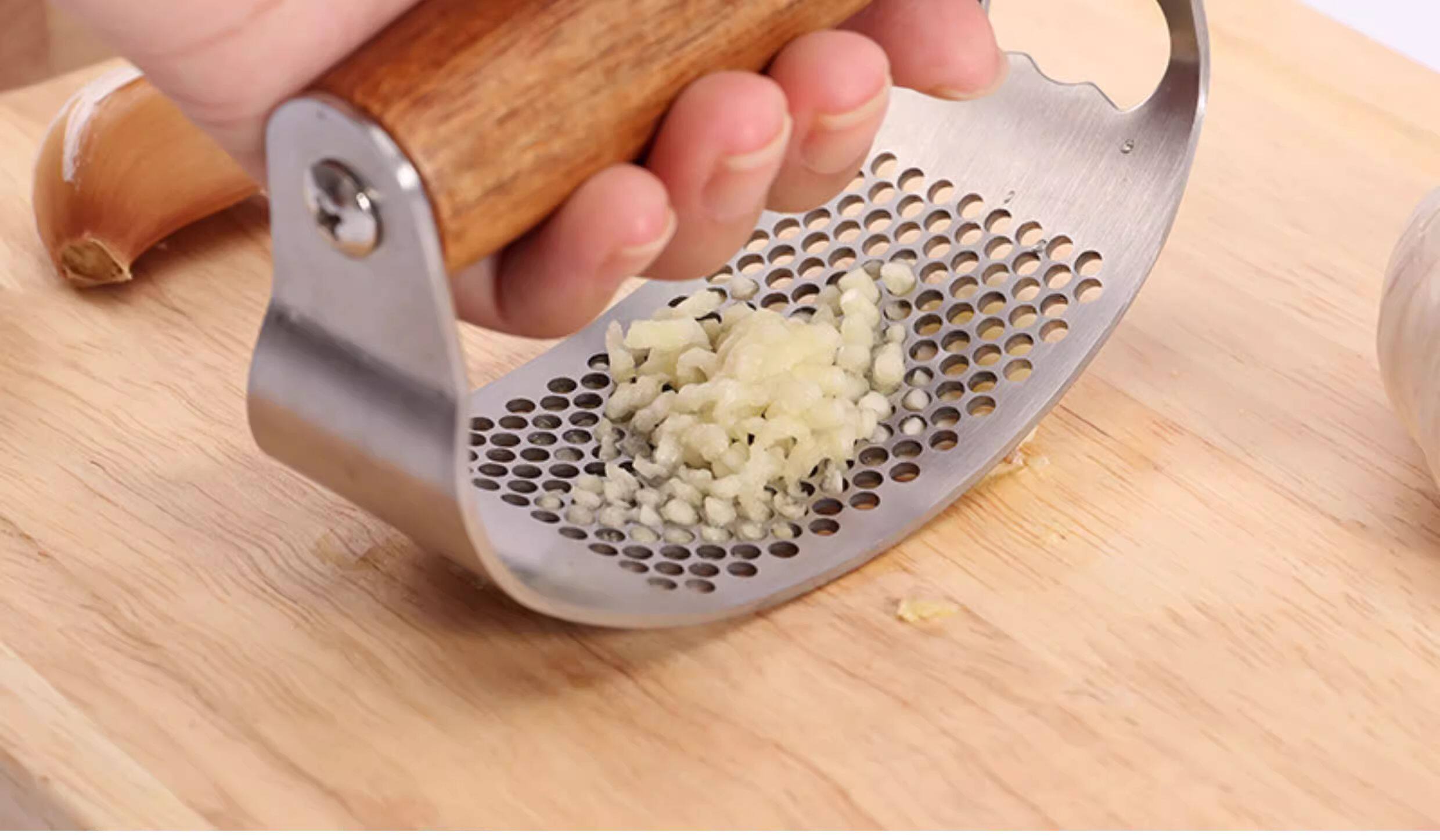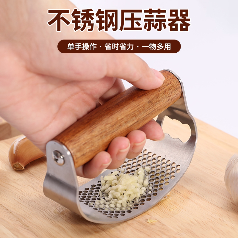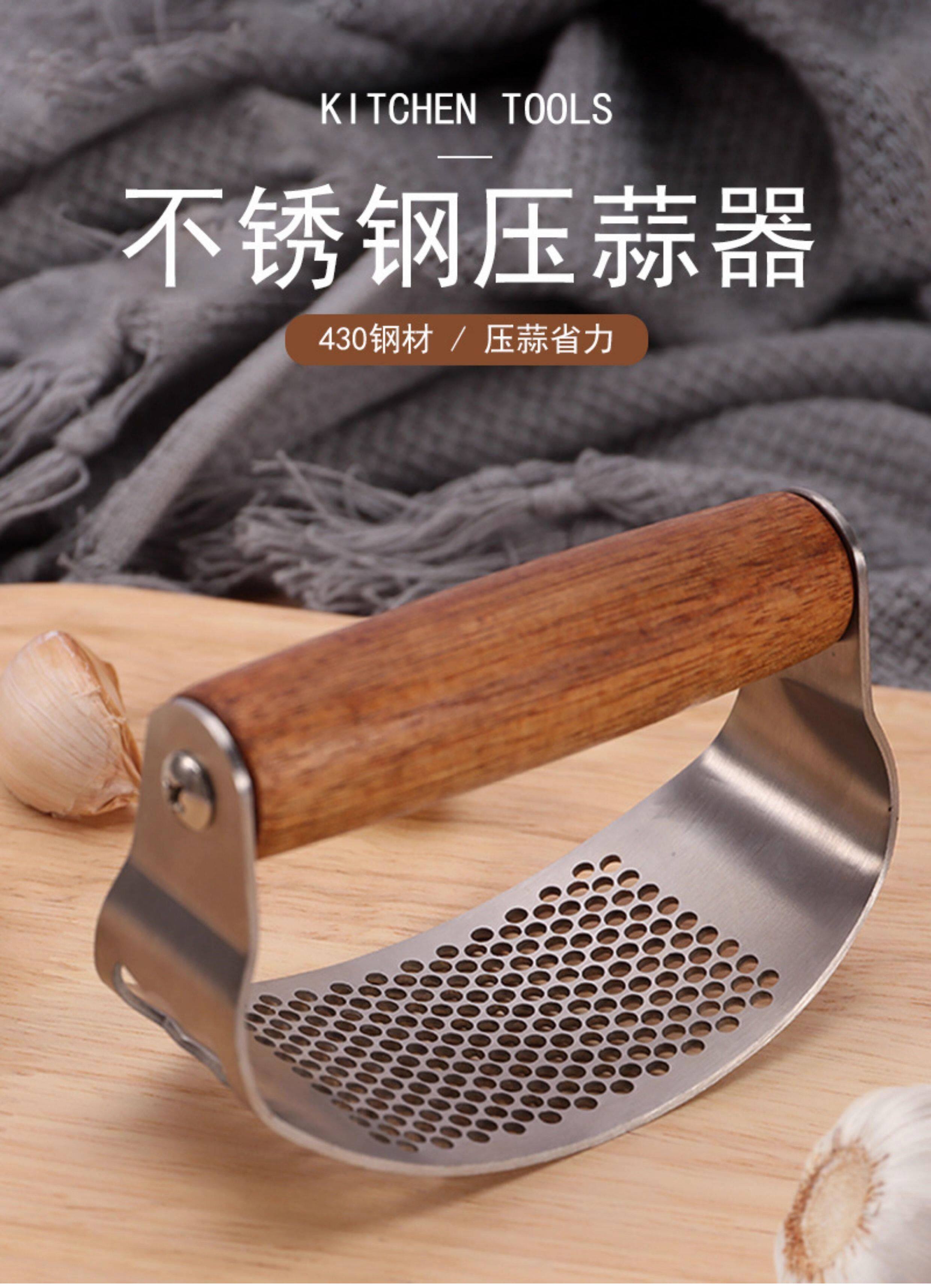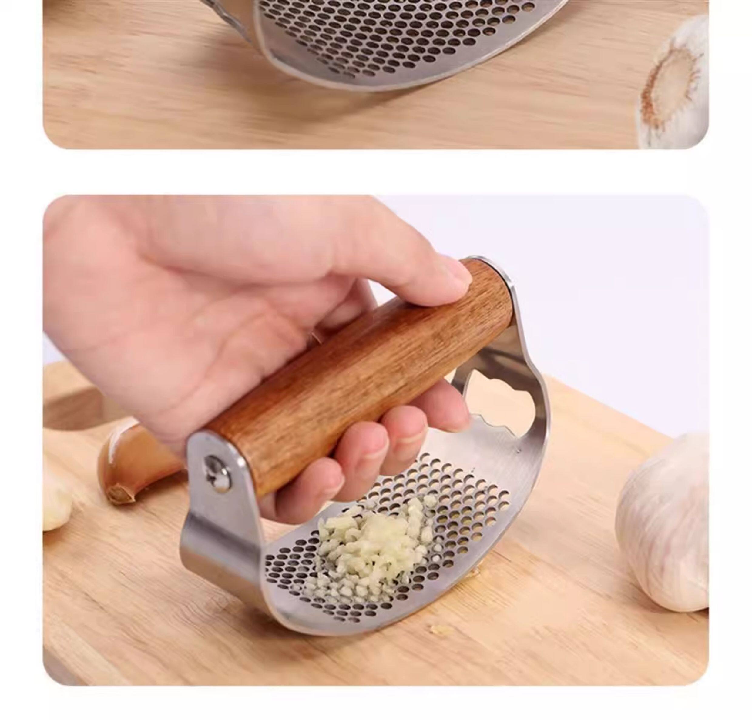 Пресс для чеснока из цельной древесины из нержавеющей стали, кольцеобразный пресс для чеснока, ручная ручка из дерева акации, многофункциональная чесночная толкалка для домашнего использования.
