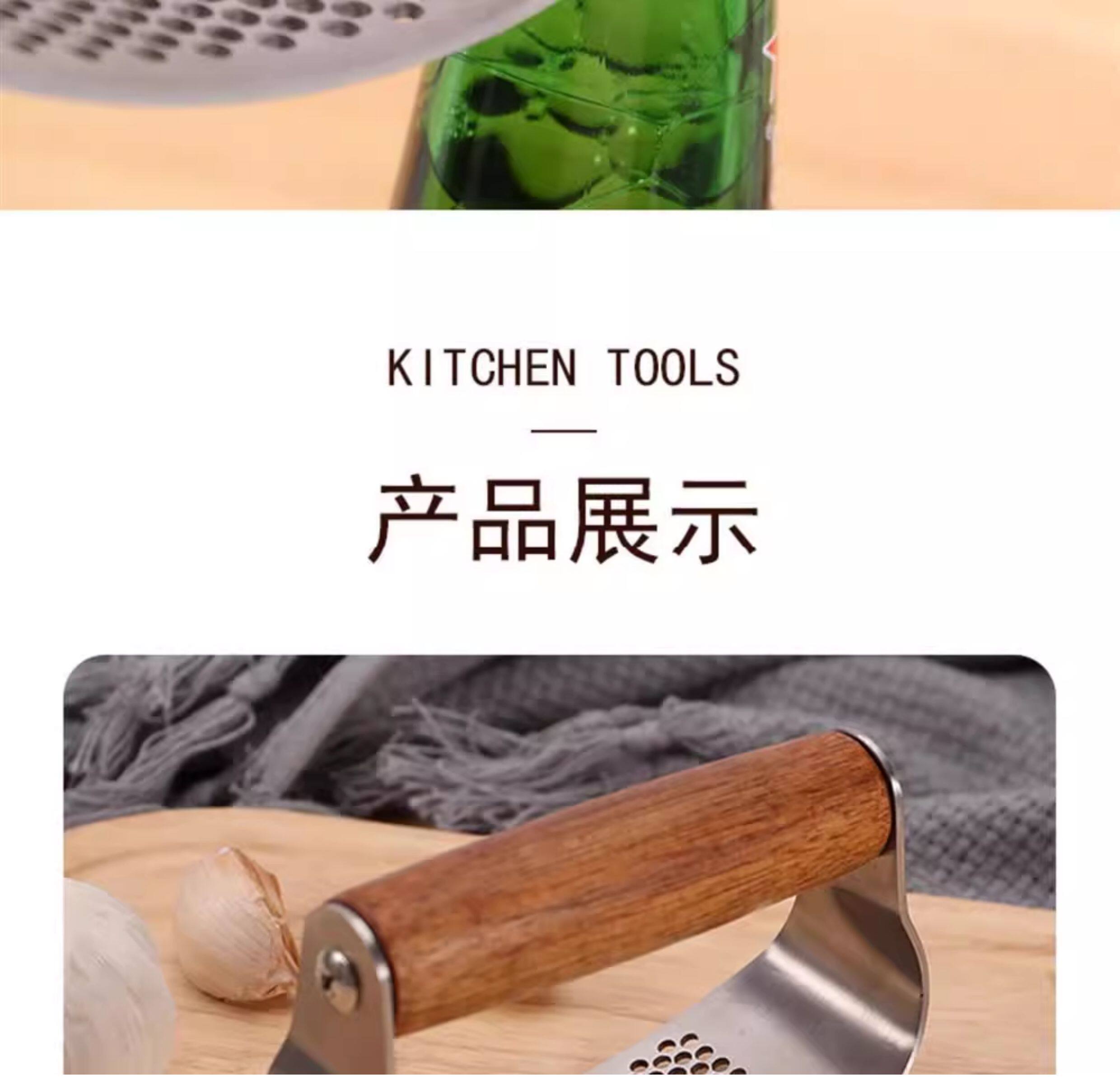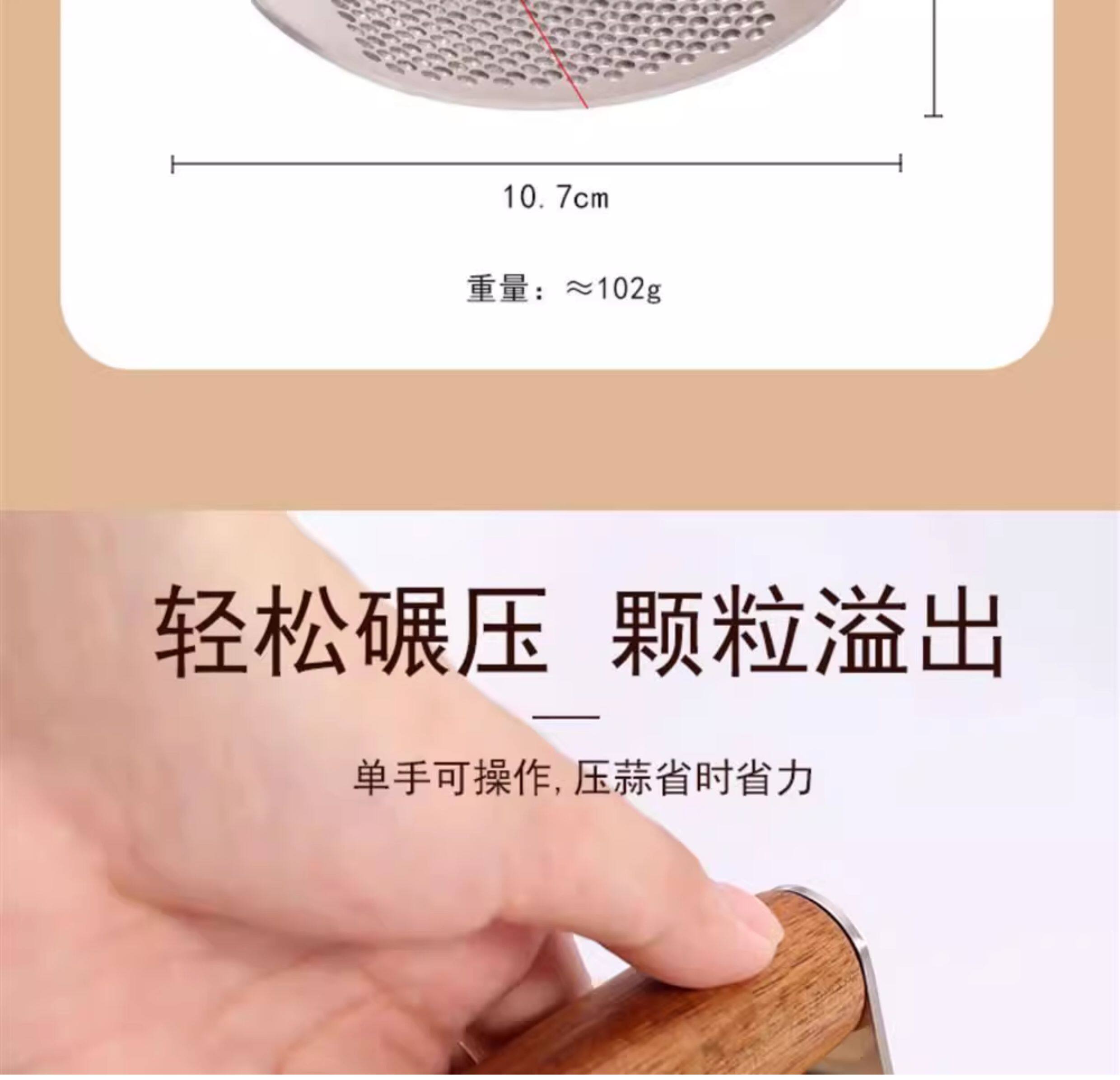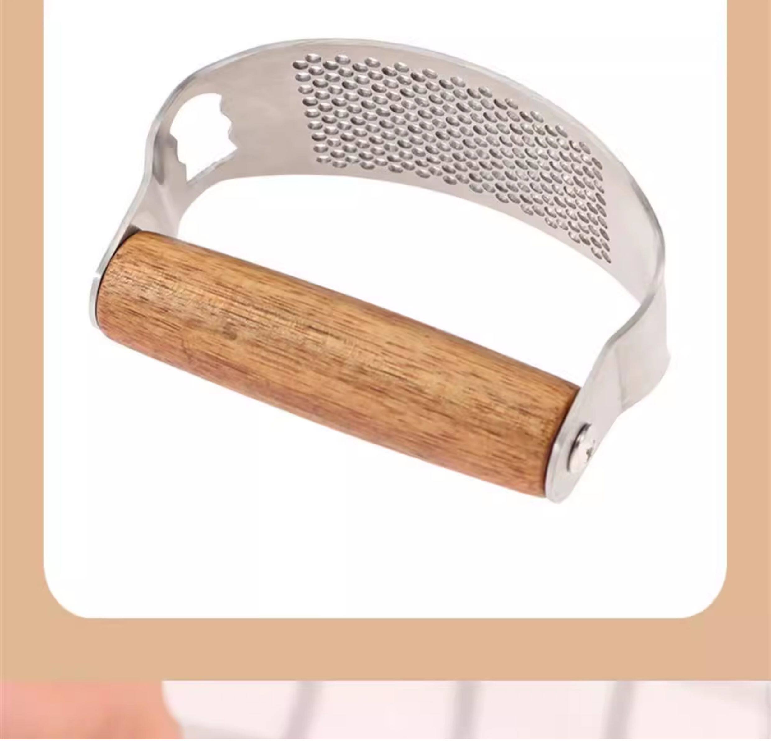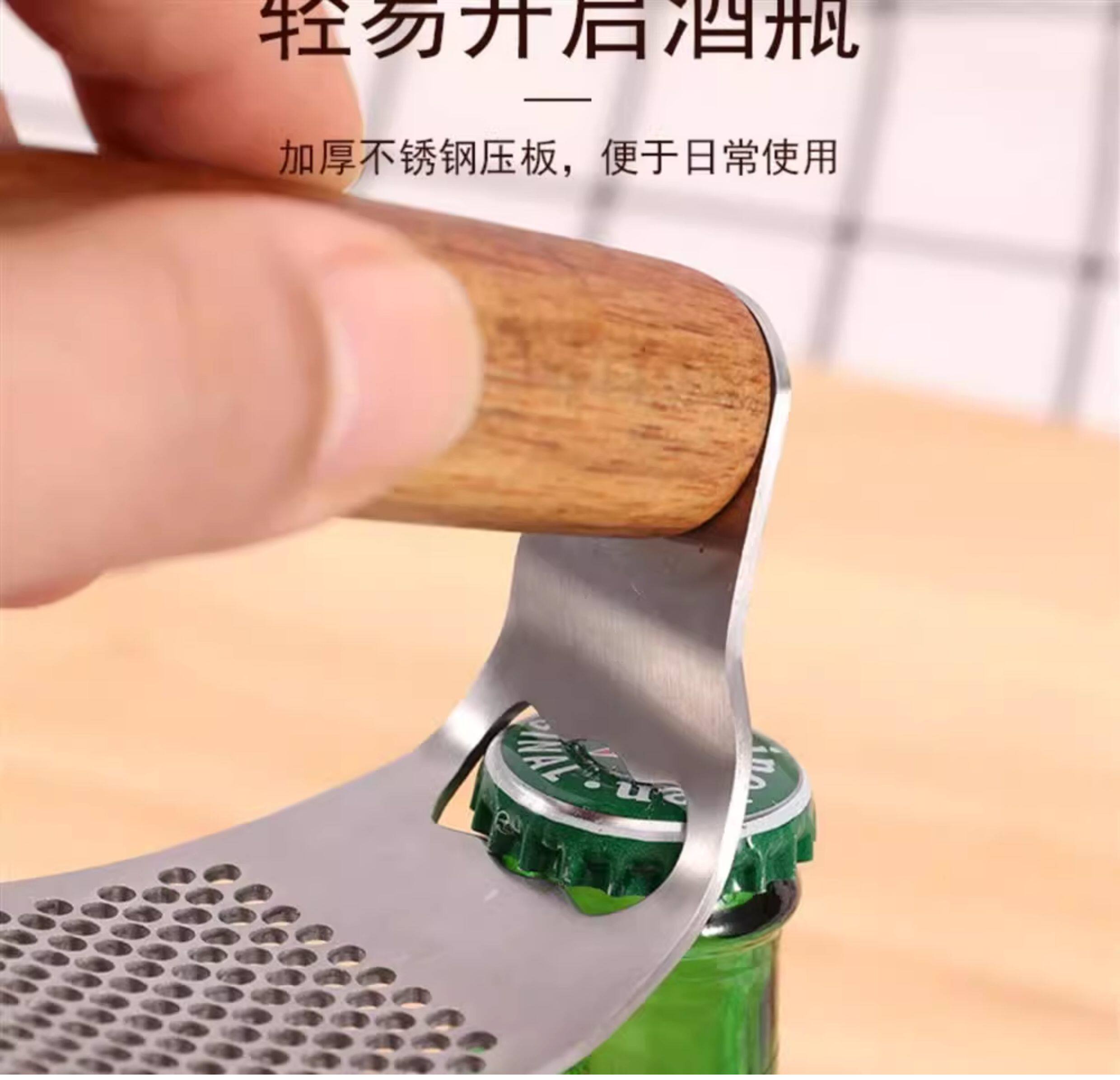 Пресс для чеснока из цельной древесины из нержавеющей стали, кольцеобразный пресс для чеснока, ручная ручка из дерева акации, многофункциональная чесночная толкалка для домашнего использования.