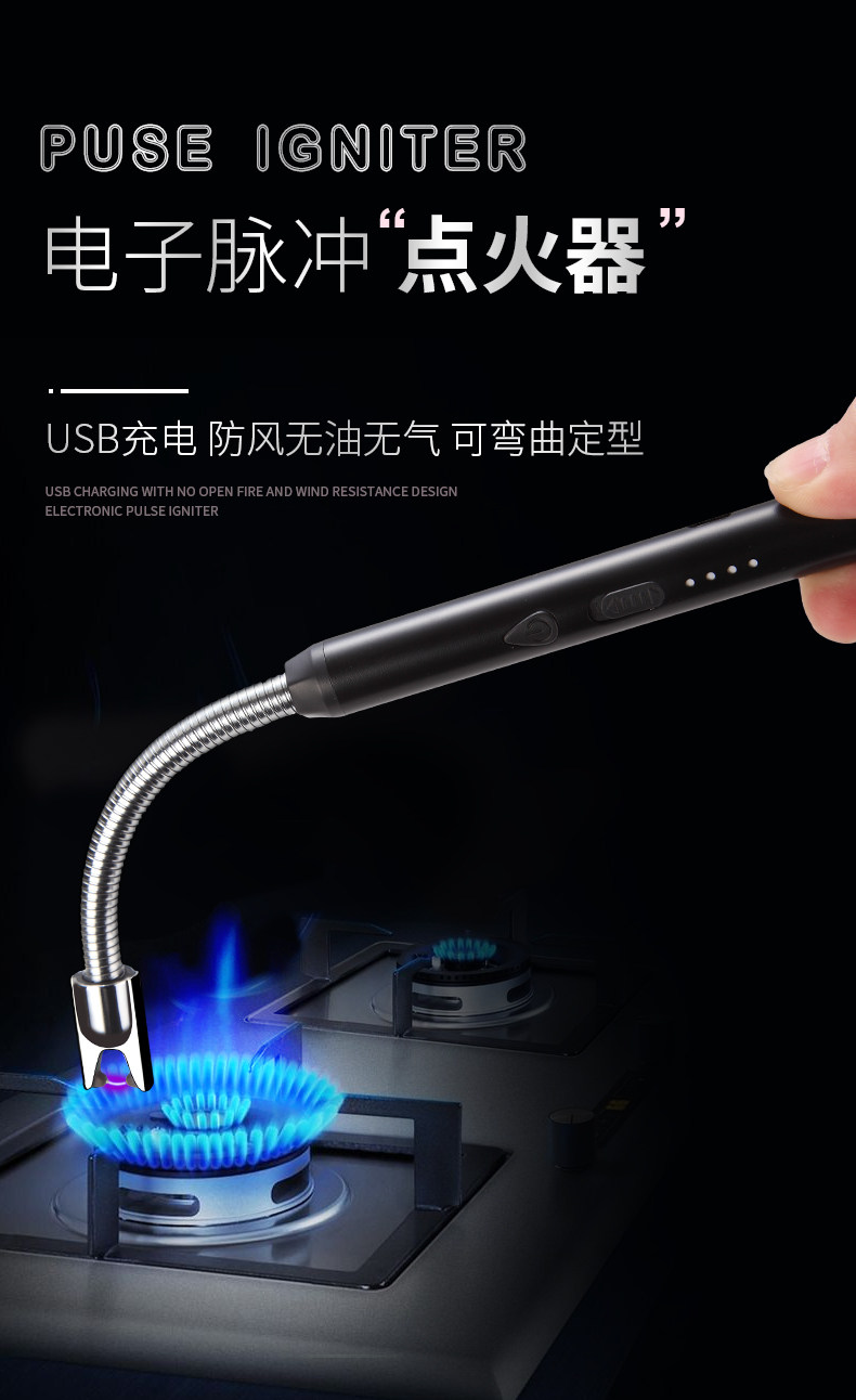 Газовая плита газовая пожарная водители пульс огненная палочка длинная рта зарядка легкая банка сгибает USB -пунктирное мошенничество