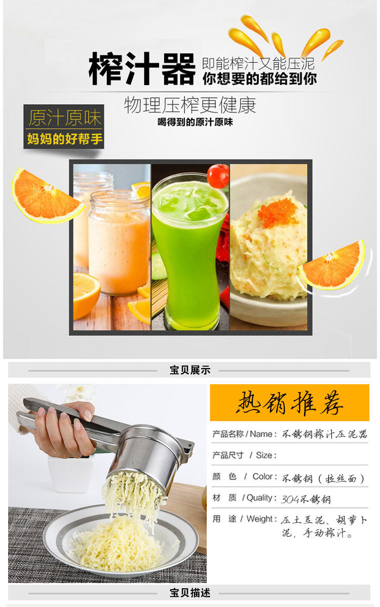 Ручная соковыжималка сжатие фруктов из нержавеющей стали многофункциональное сок экстрактор картофельный пюре апельсиновый сок пресс