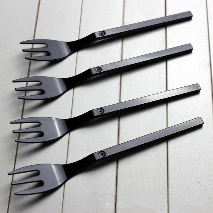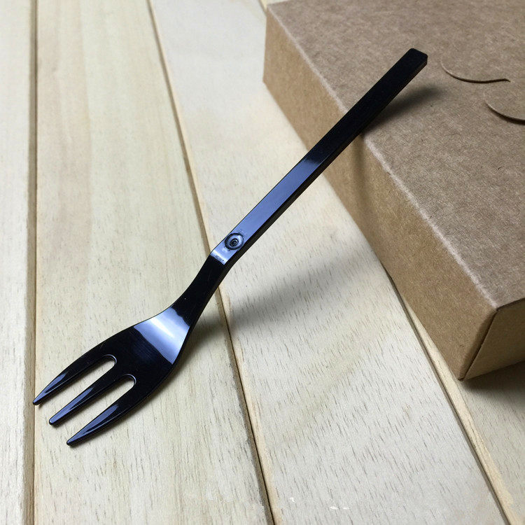 Черная пластиковая вилка для фруктов, упаковка