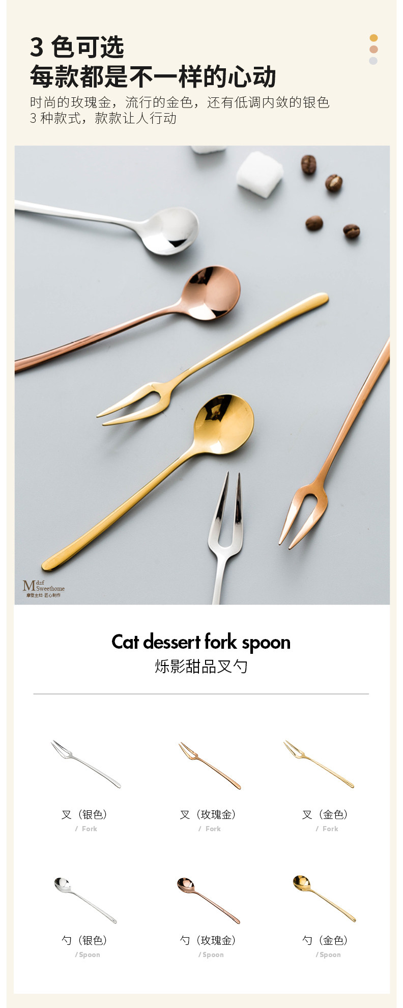 Вилка для фруктов, десертная креативная ложка из нержавеющей стали