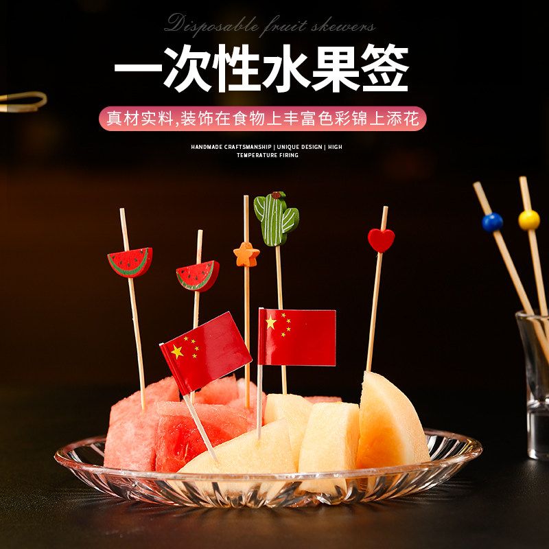 Одноразовый творческий коктейль декоративный фирменный фруктовой струна фруктовая вилка домашняя цветочная виза бамбуковая палочка закуска арт -зубочистка