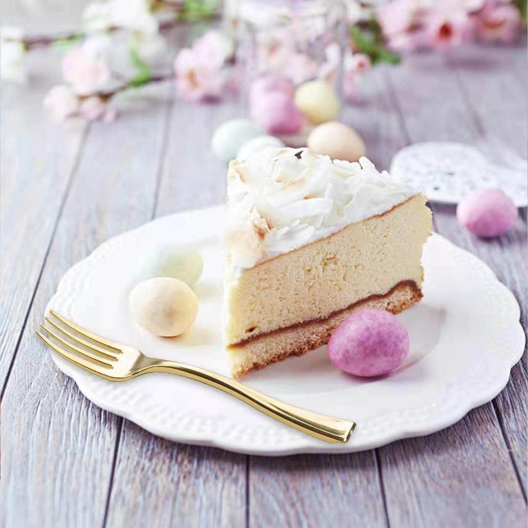 Золотая десертная пластиковая вилка из нержавеющей стали для коммерческого использования, 50 шт