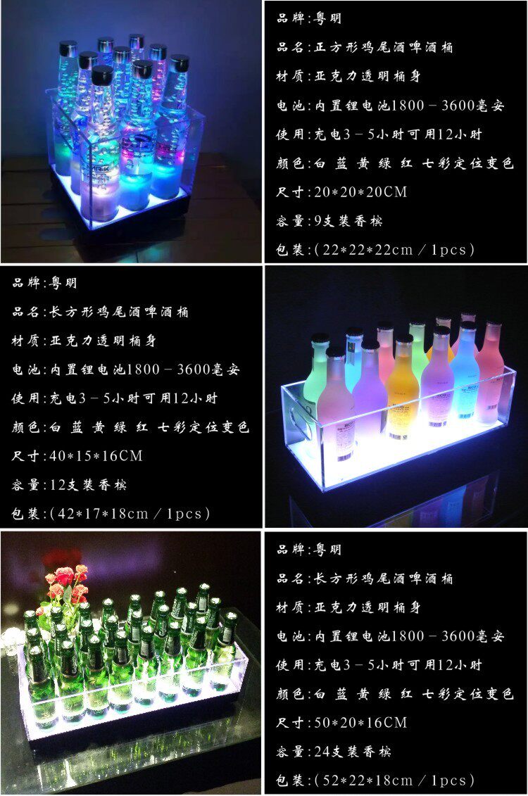 Светодиодная зарядка легкая ствол льда с пивом, акриловый кузов ствола, индивидуальный размер и логотип, свяжитесь с обслуживанием клиентов