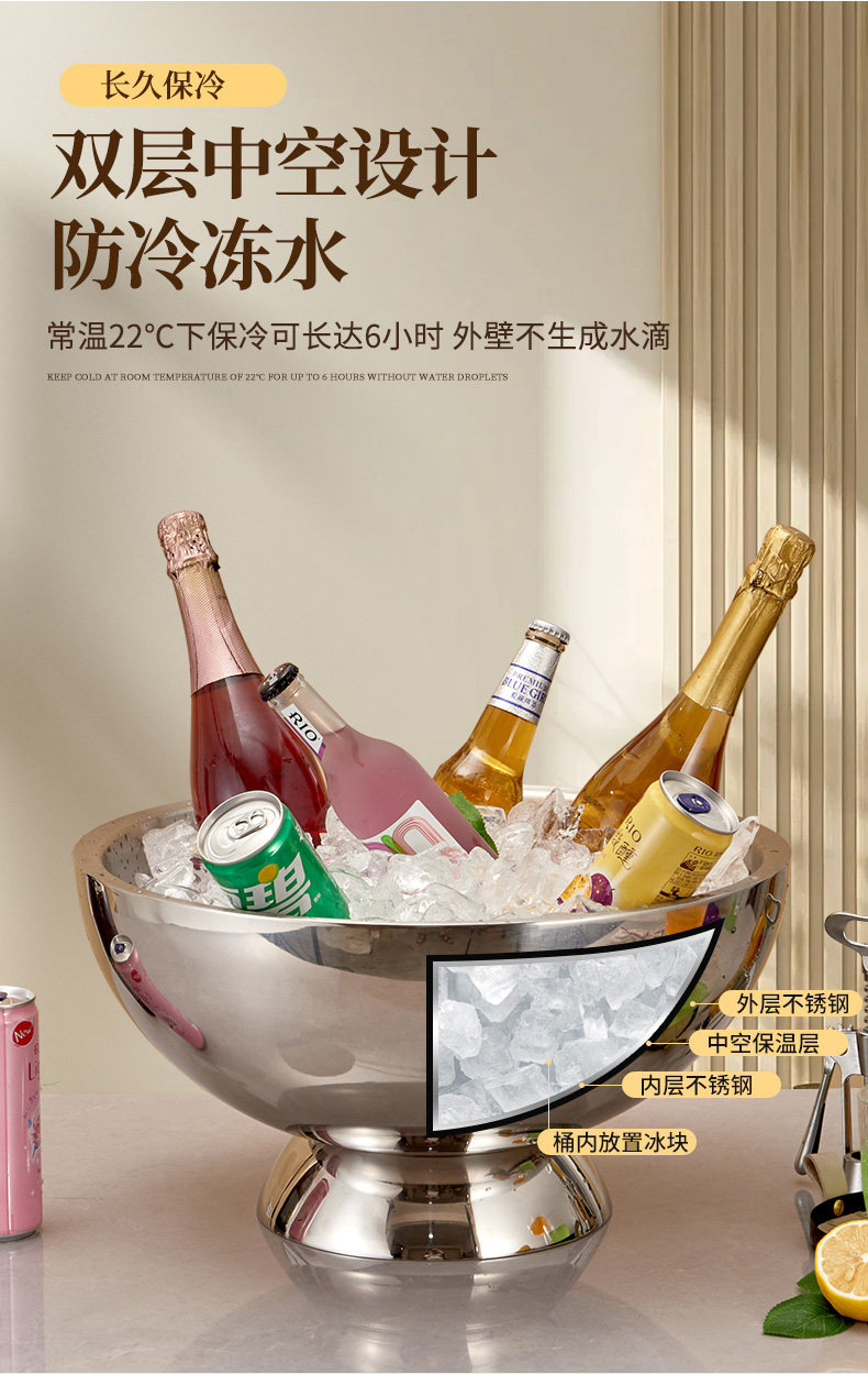 卓晋 Вместительное и большое ведро для льда из нержавеющей стали для коммерческого использования
