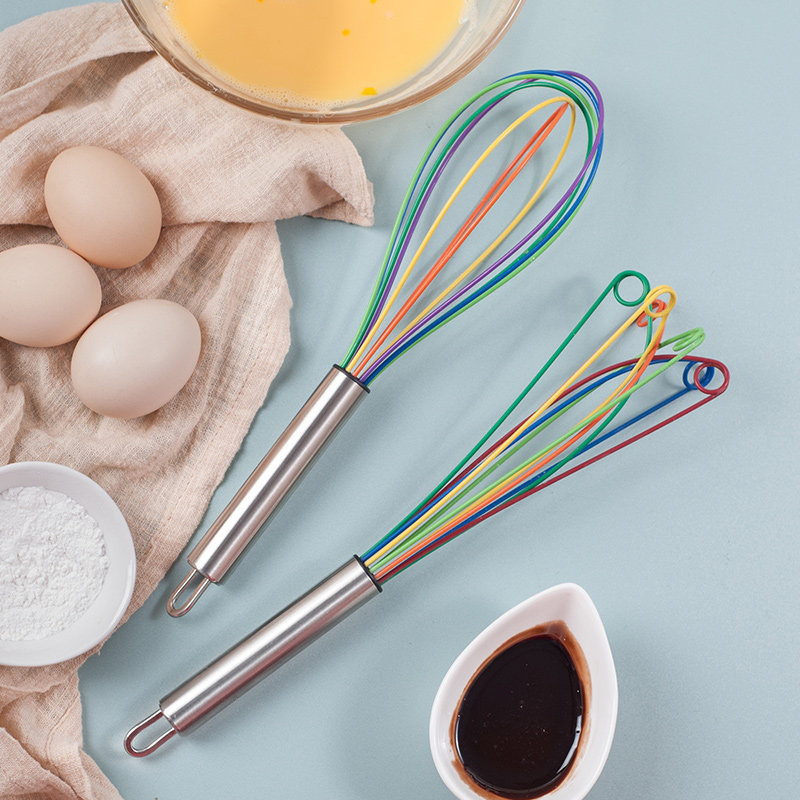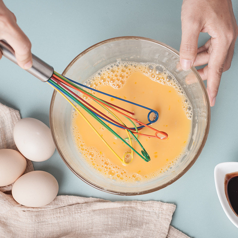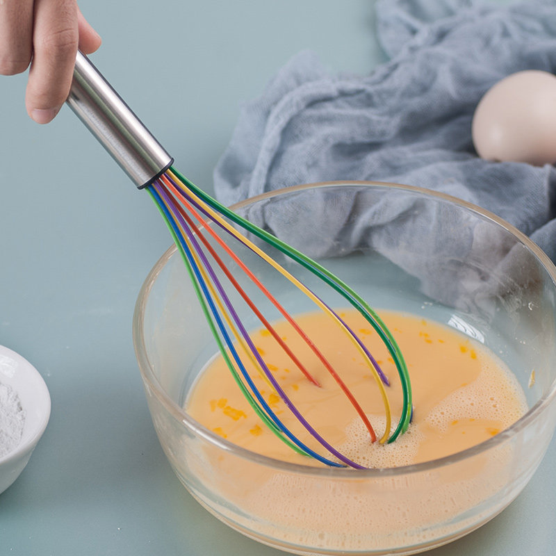 Взбивалка для яиц из нержавеющей стали, силиконовая ручная бытовая маленькая цветная венчик для выпечки муки, перемешивающая яичный белок