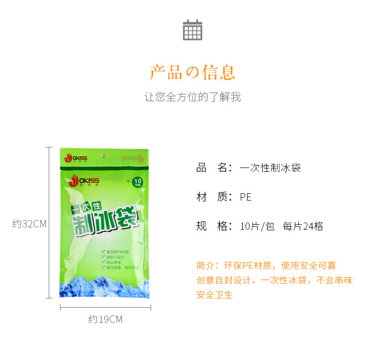 Одноразовая сумка для льда, кубики льда, форма