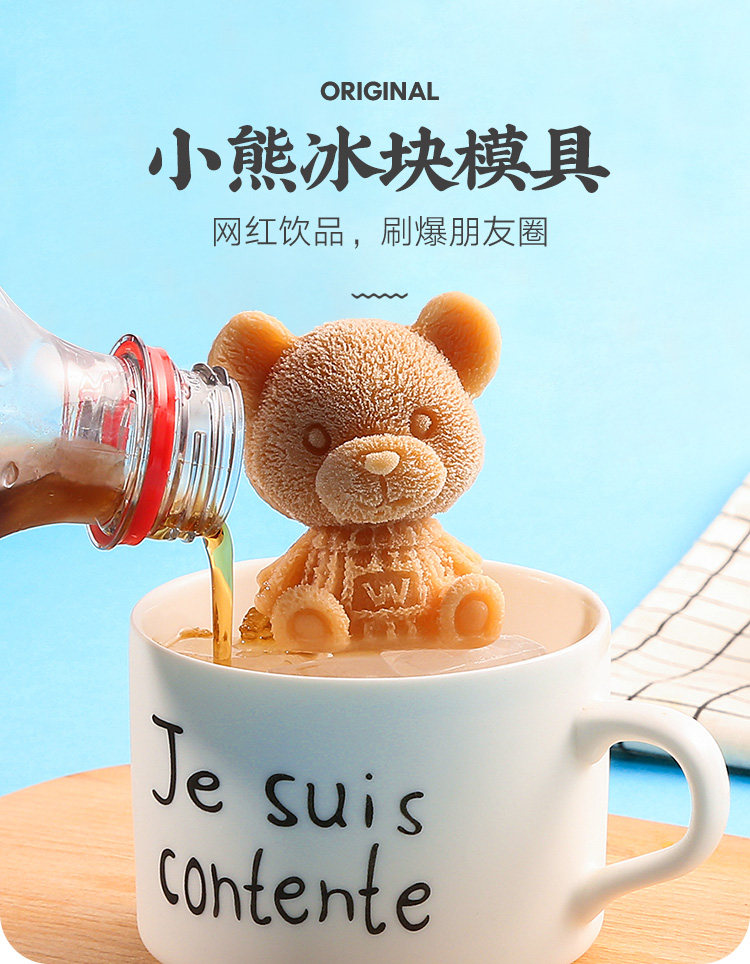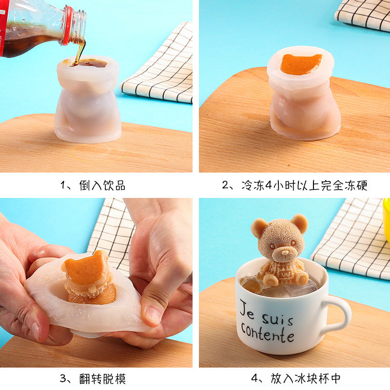 Кубики льда, кофейная трехмерная креативная силиконовая форма, с медвежатами, популярно в интернете