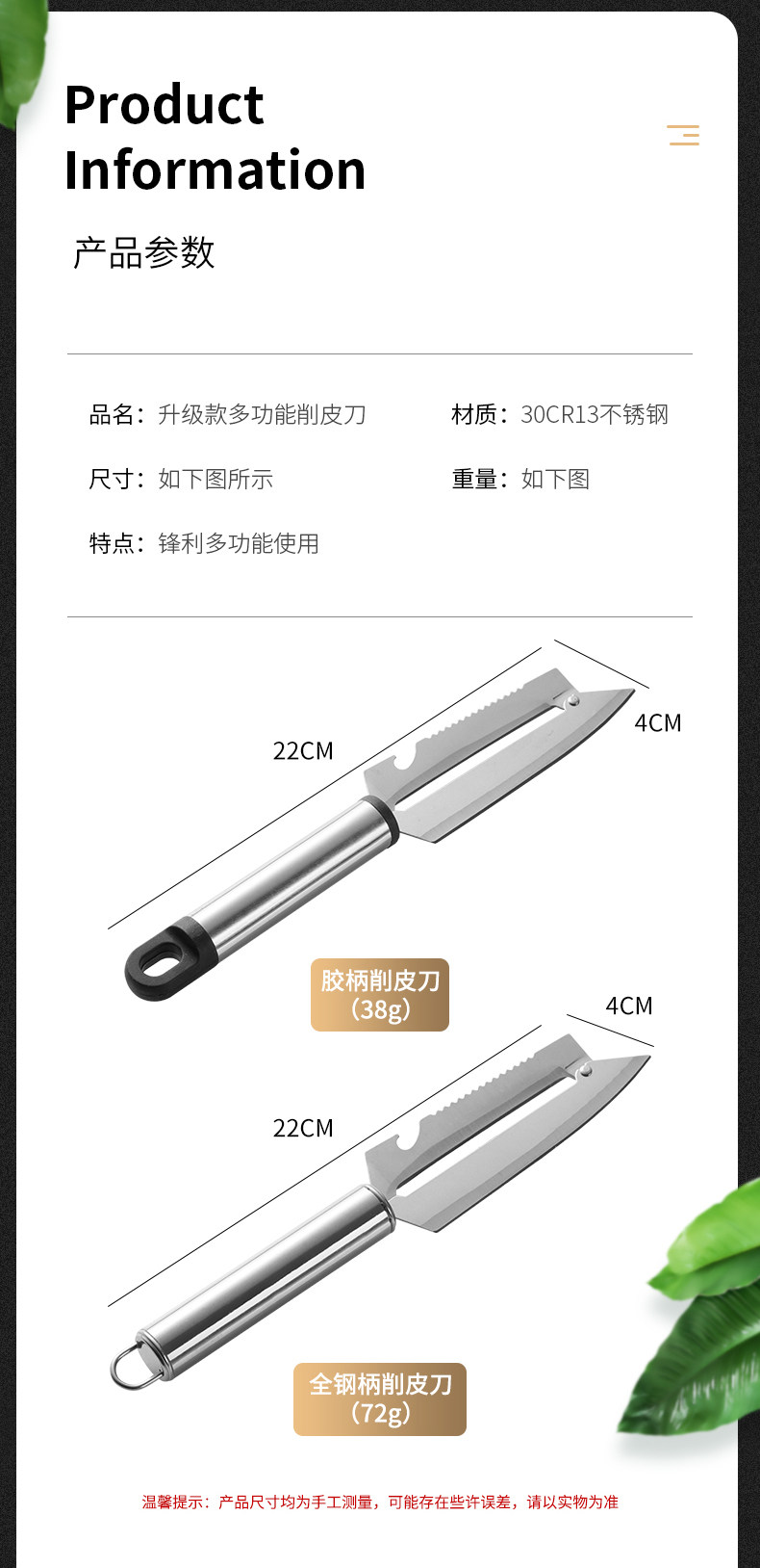 Многофункциональное пилинг устройства фруктовый нож из нержавеющей стали.