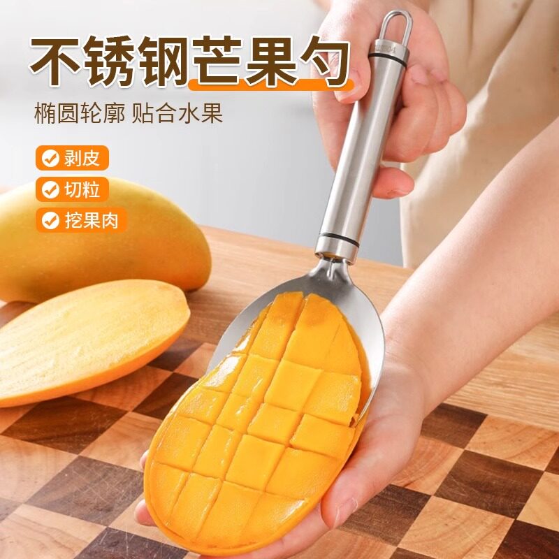Нож для резки мякоти манго, нарезанные кубиками фрукты из нержавеющей стали 304, черпательная ложка, режущий делитель, специальный инструмент для зерен фруктов манго