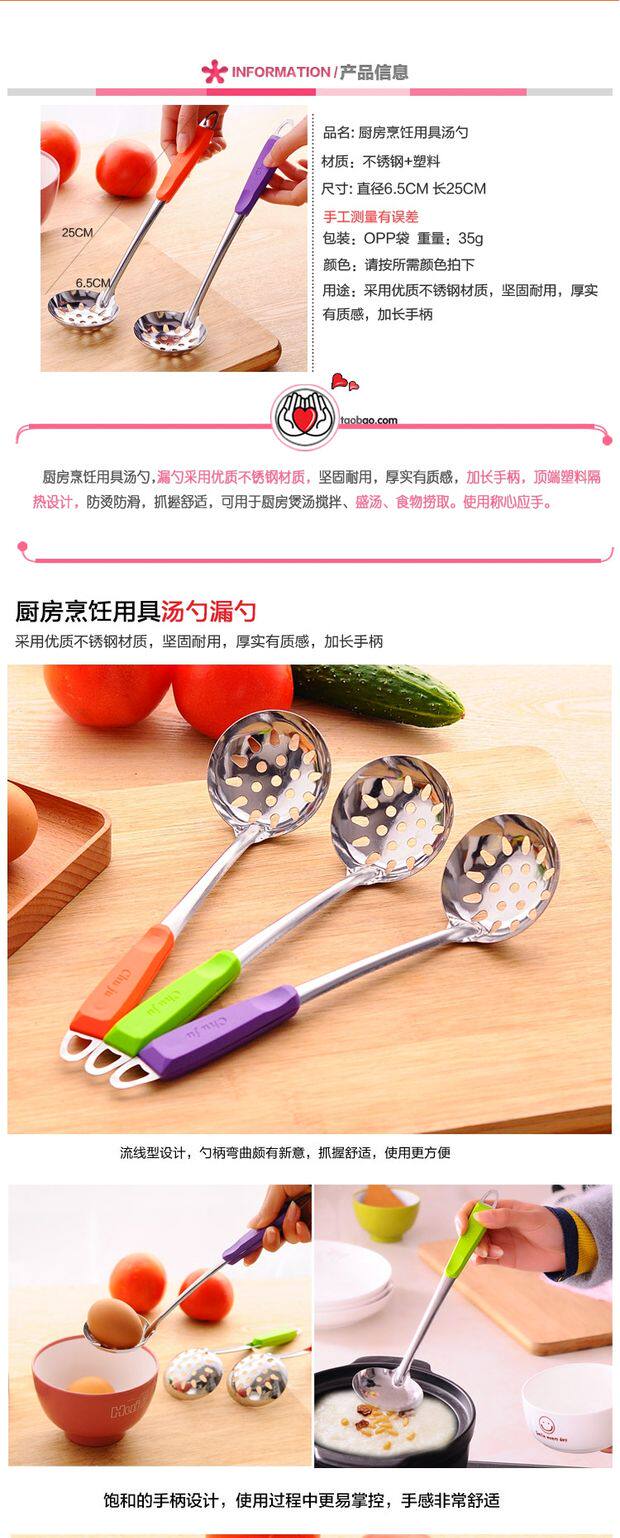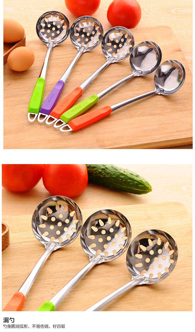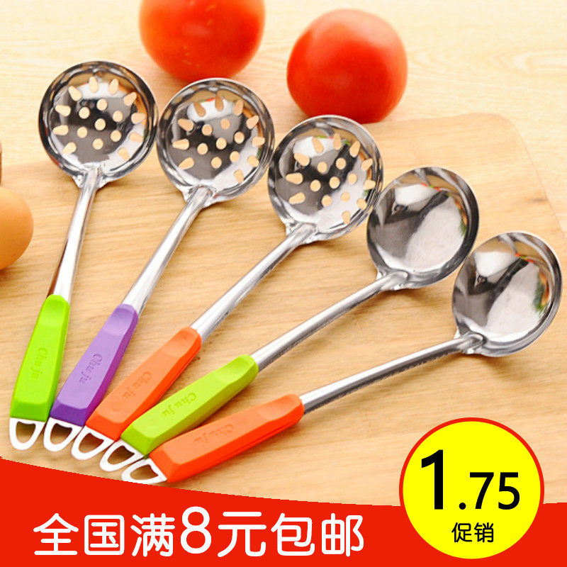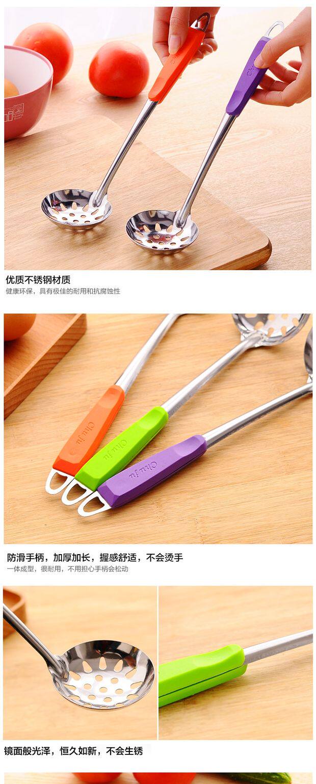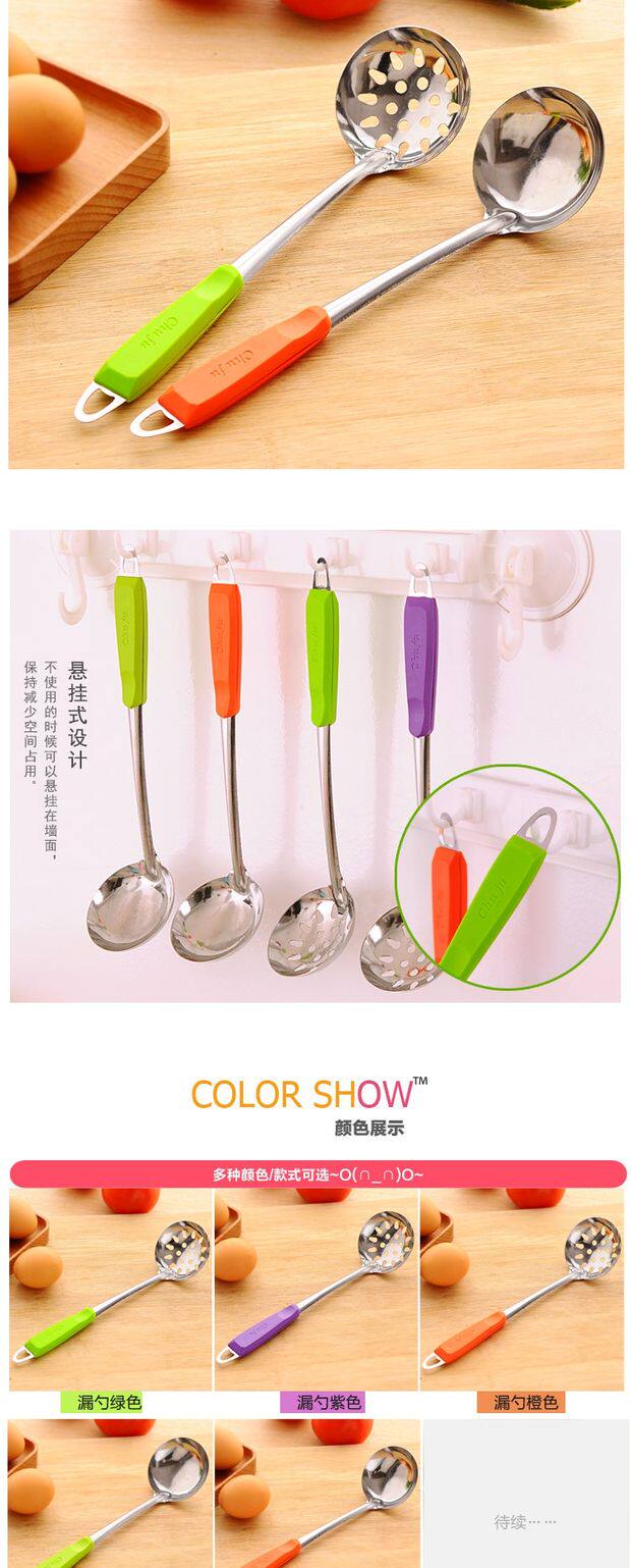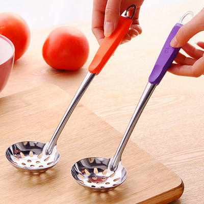 Цветная ручка из нержавеющей стали суп -ложки кухонный горшок суп, суп, смесите ложку, может повесить трубку, кайблейки, горячий горшок ложка, полная бесплатной доставки