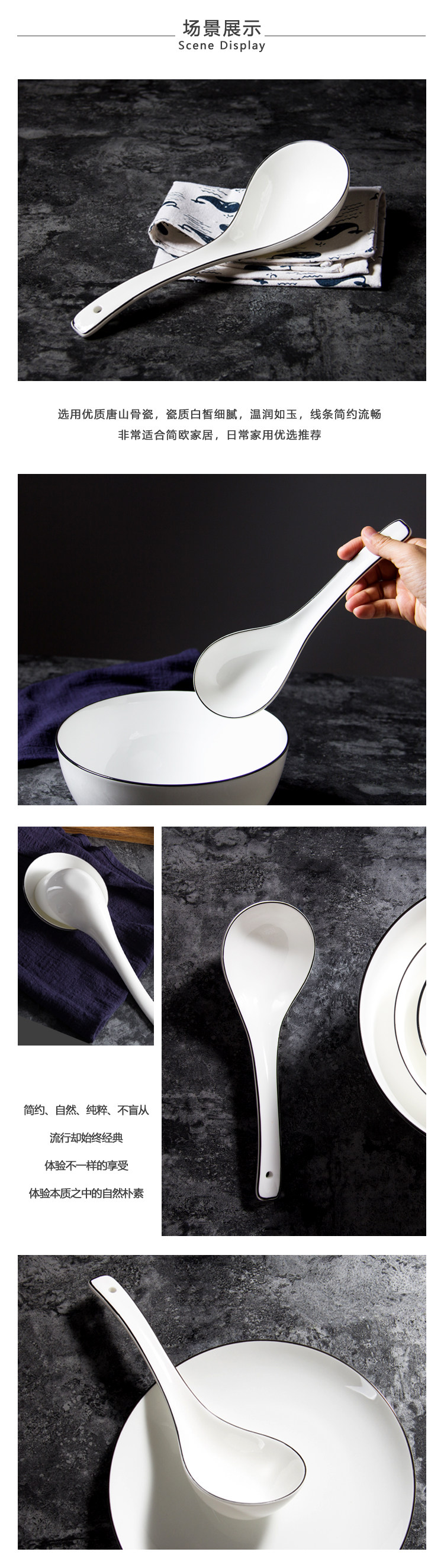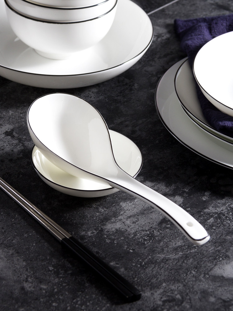 Керамическая большая креативная белая ложка, супница, посуда, стиль