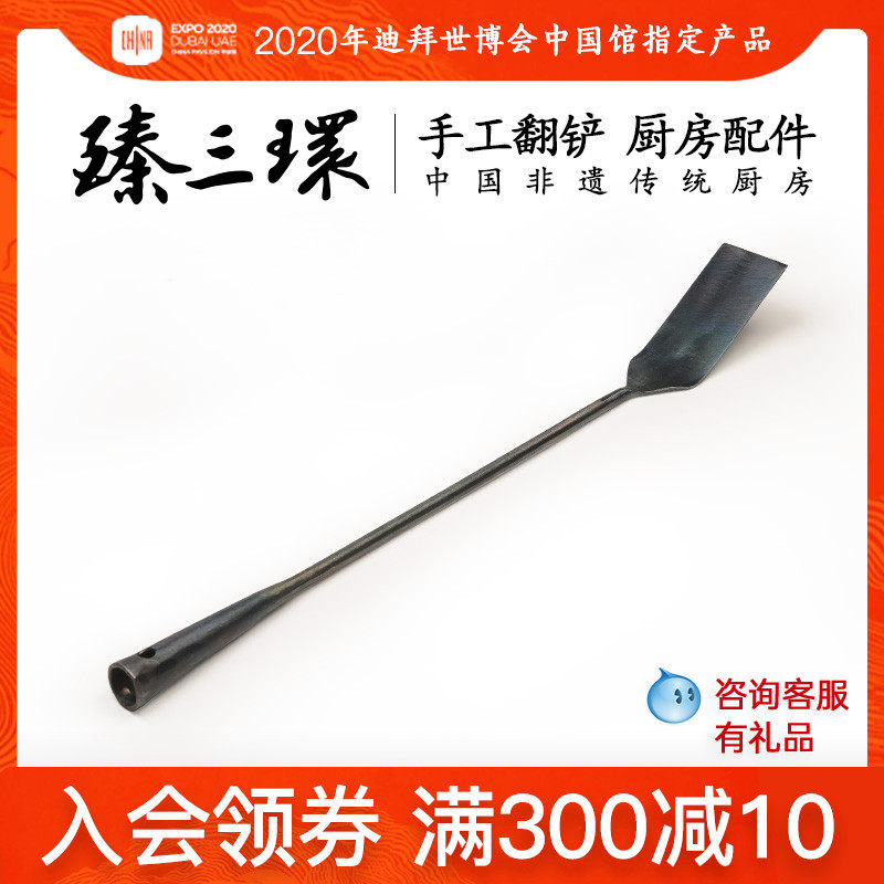臻三环 Длинная ручка с железной горшкой длинная, а жареная рыба лопата повернула домашнюю кухонную посуду.
