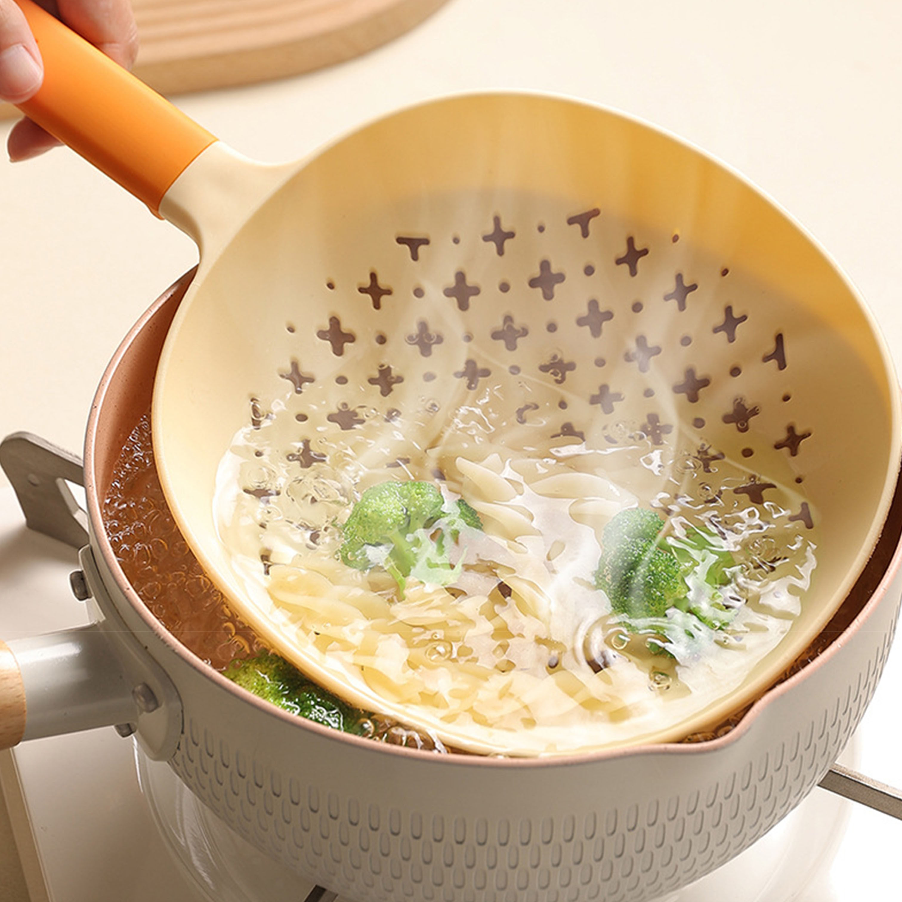 Высокая температурная лапша с лапшой с лапшой с длинной ручкой, дренирующими пельмени, пельмени лапши, ложка, длинная ручка утечка, водопроводной забор