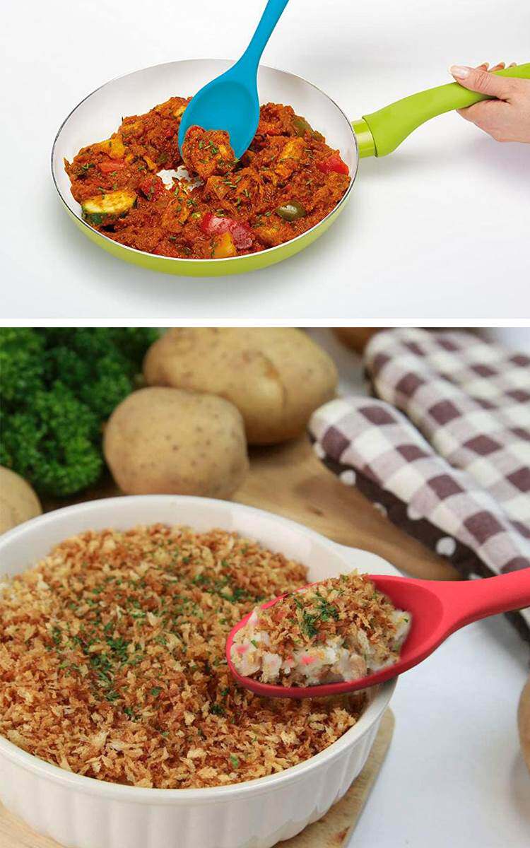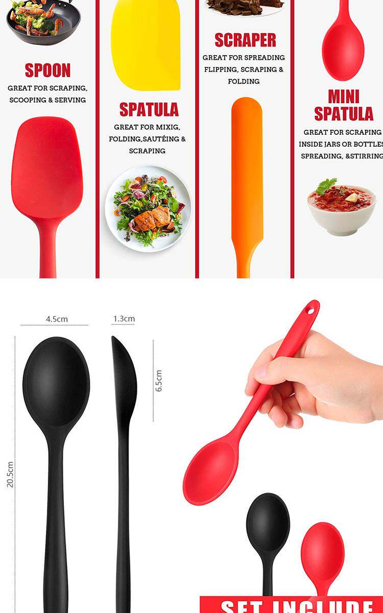 Новая пищевая класс Силиконовый интегрированный суп -ложки салат с салатом длинная ложка плоская ложка горит суп с силиконовой кулинарной ложкой